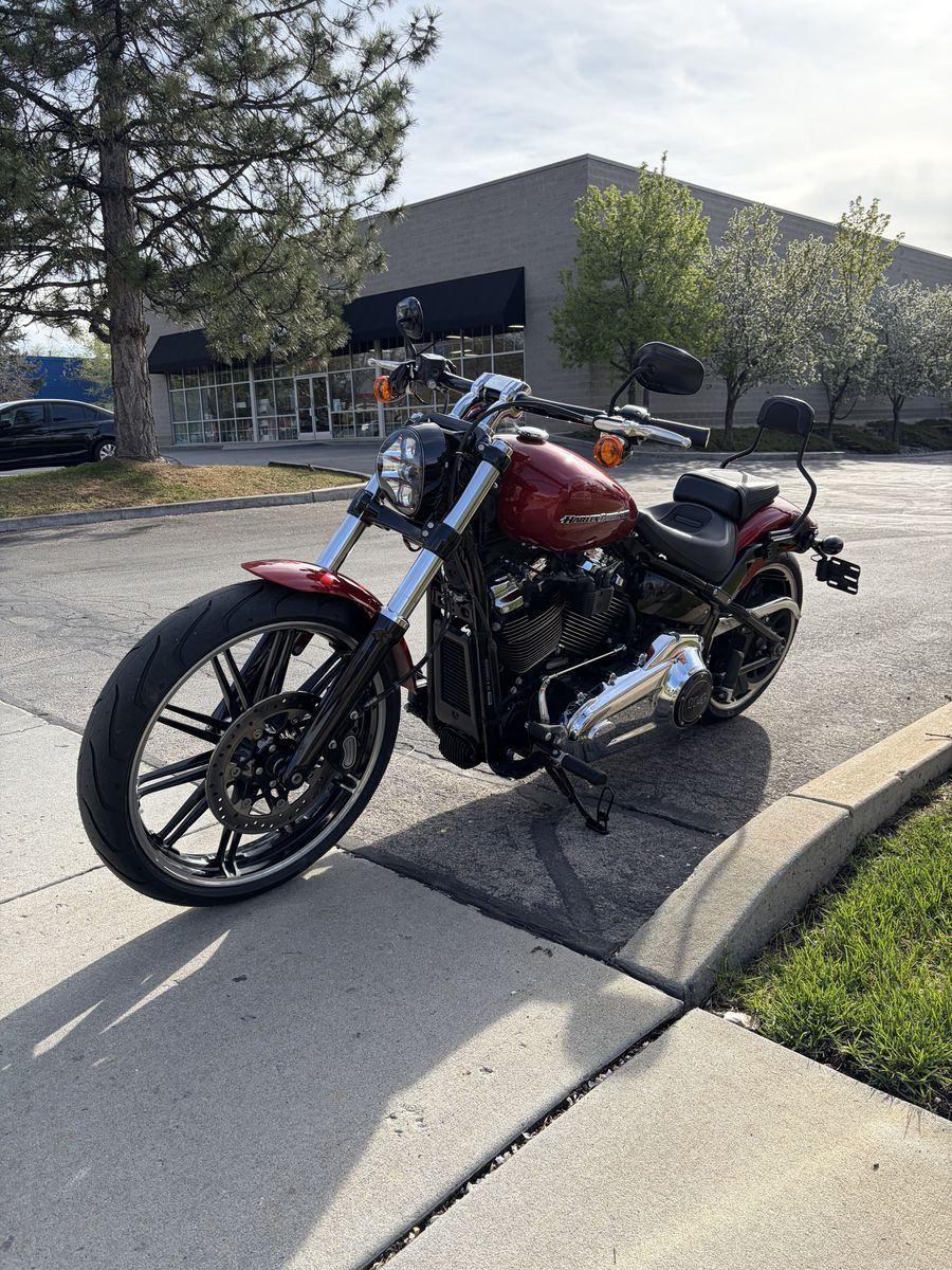 LONG, LEAN MUSCLE TAKEN TO THE MODERN EDGE The Breakout is a muscular modern chopper with pure ‘stop you in your tracks’ attitude. Be seen. Be respected. And when the light turns green, be gone.