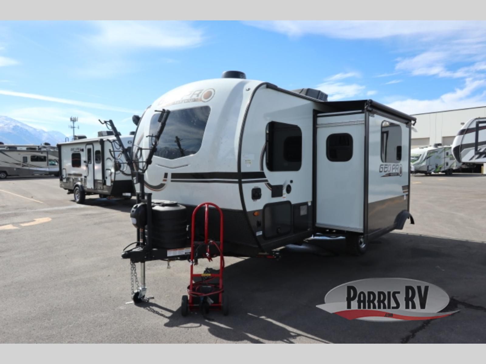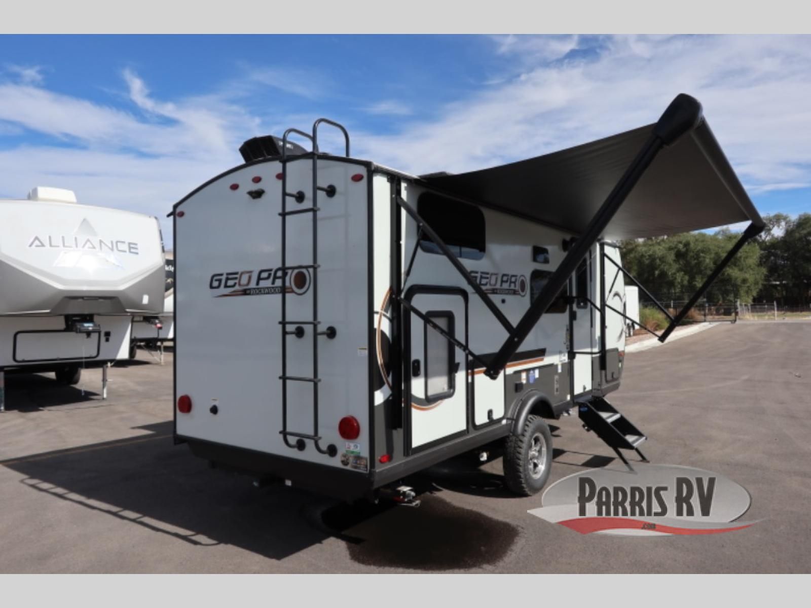 With any Rockwood GEO Pro travel trailer by Forest River you will enjoy easy towing, durable construction, and off-road capabilities with larger 15" tires and a lift kit! Each model is constructed with complete composite wall construction for added strength and durability, and the torsion axle, Rubber-Ryde suspension will make towing easier than ever. Inside, you'll find sleek roller shades for added privacy, a 12V refrigerator and a microwave, plus a 20,000 BTU furnace to keep you warm during the colder camping months.