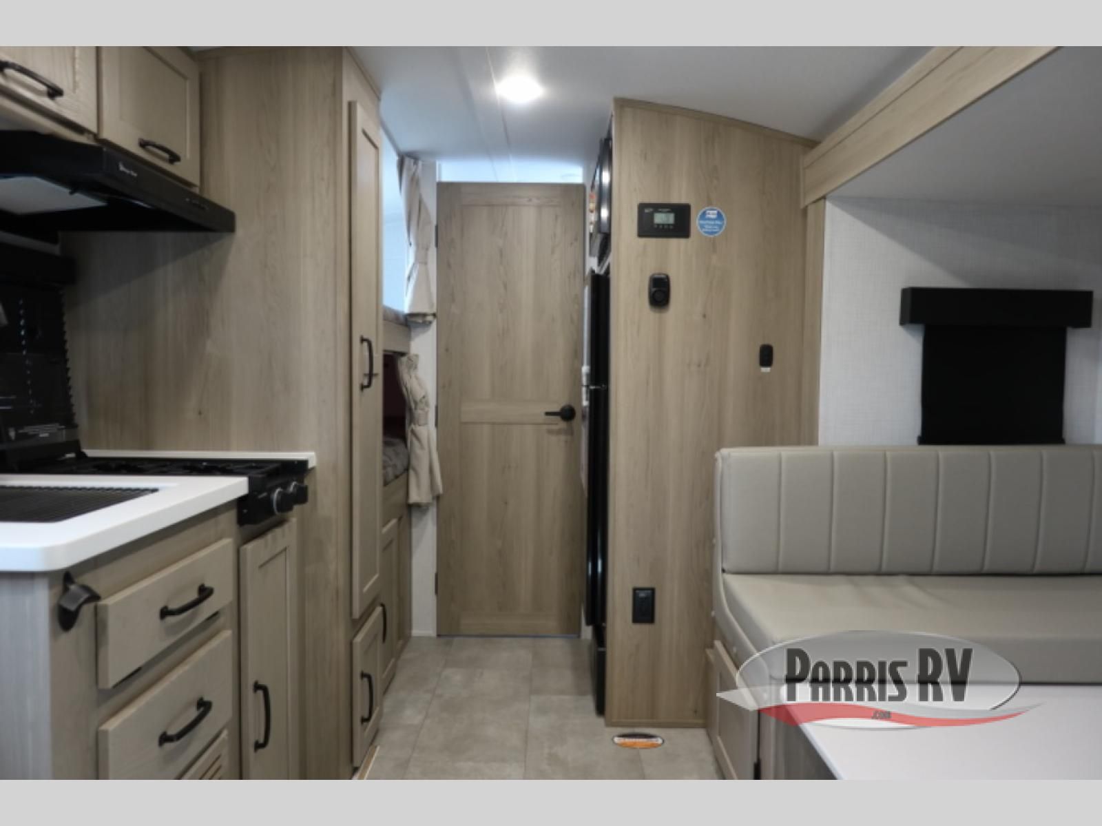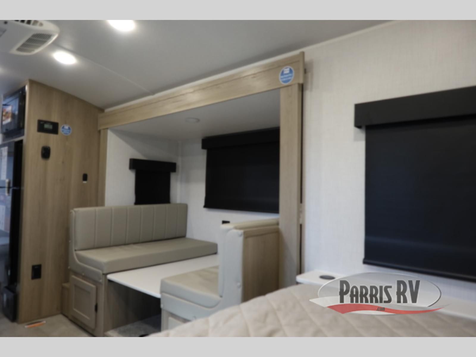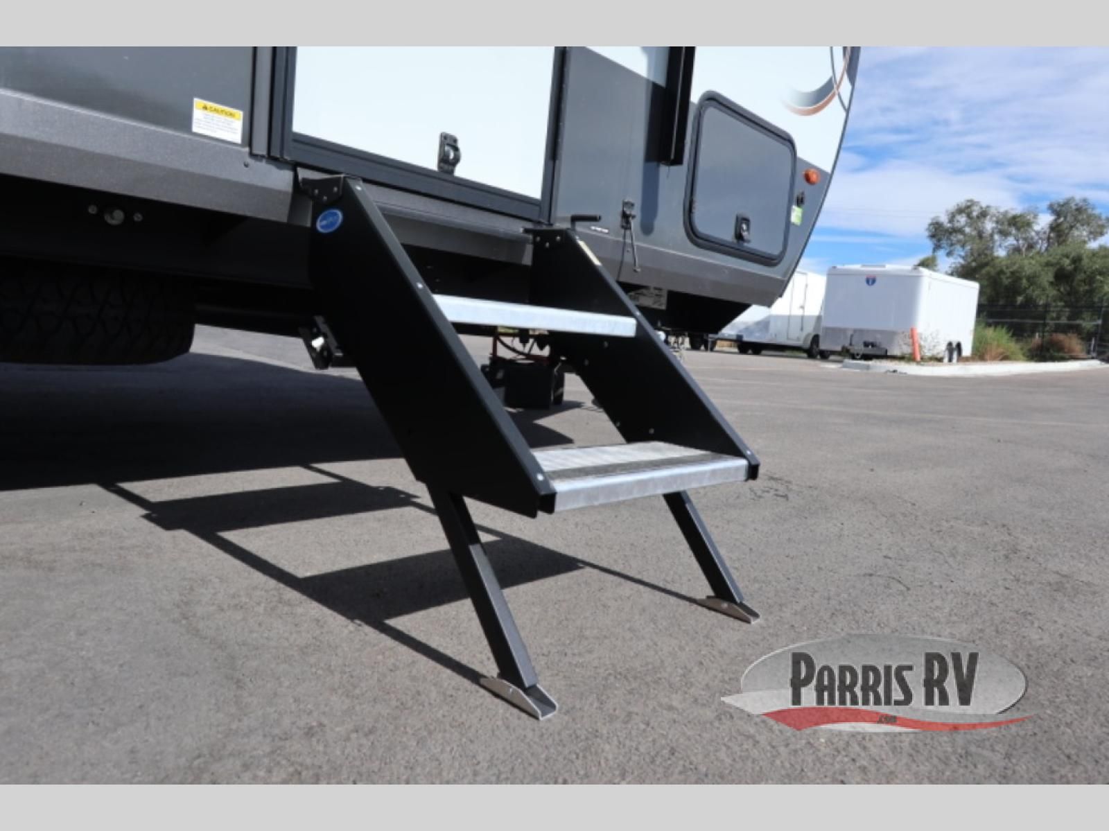 You're going to love camping with your family or friends in this spacious bunk model! The bunk beds will be perfect for little ones, while you take the front full-size bed. There is also a 44" booth dinette within the slide out for additional sleeping and seating space. The kitchen includes everything the chef will need to prepare meals each day, including a recessed cooktop, microwave oven, and a 12V refrigerator for perishables. If the weather is nice, you may just find the chef outdoors cooking on the outside griddle under the 14' power awning. And check out the exterior bike door that will be perfect for bikes, luggage, or extra camp gear. The optional Power Package available on this model includes three 200W solar panels, a 460 Ah Mastervolt MLI lithium-ion battery, two smart remotes, and more off-grid features!