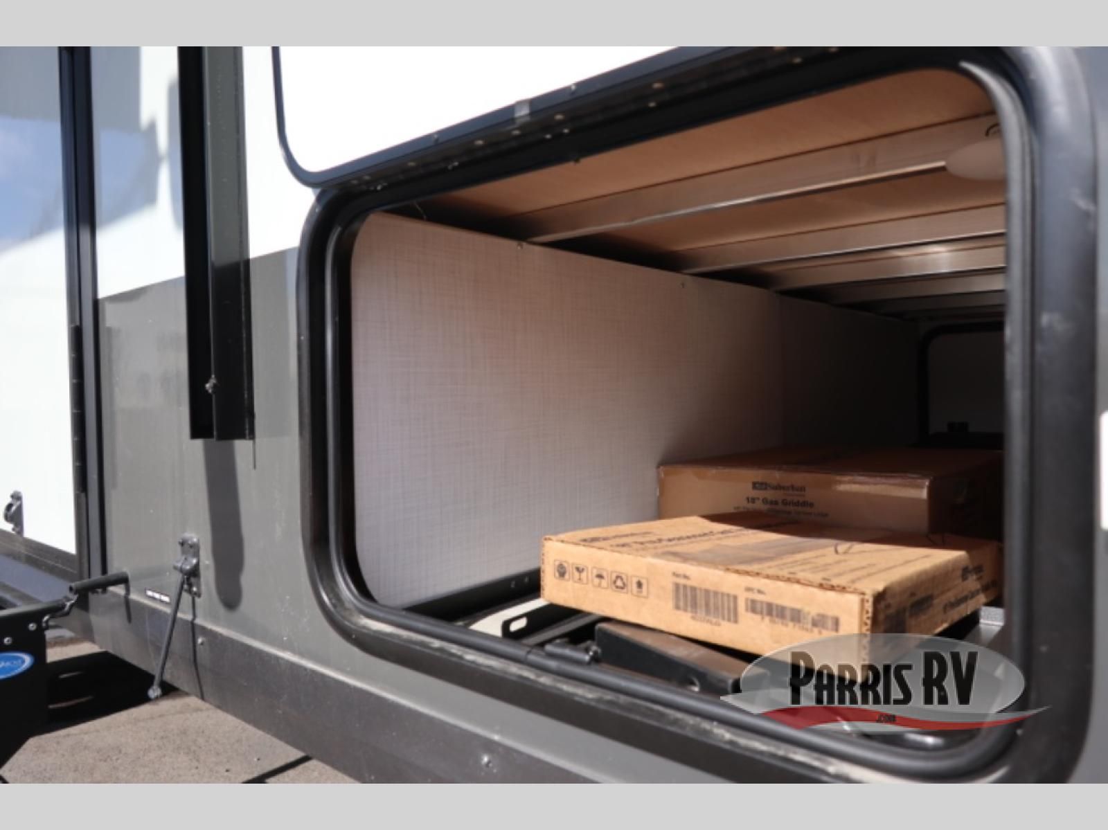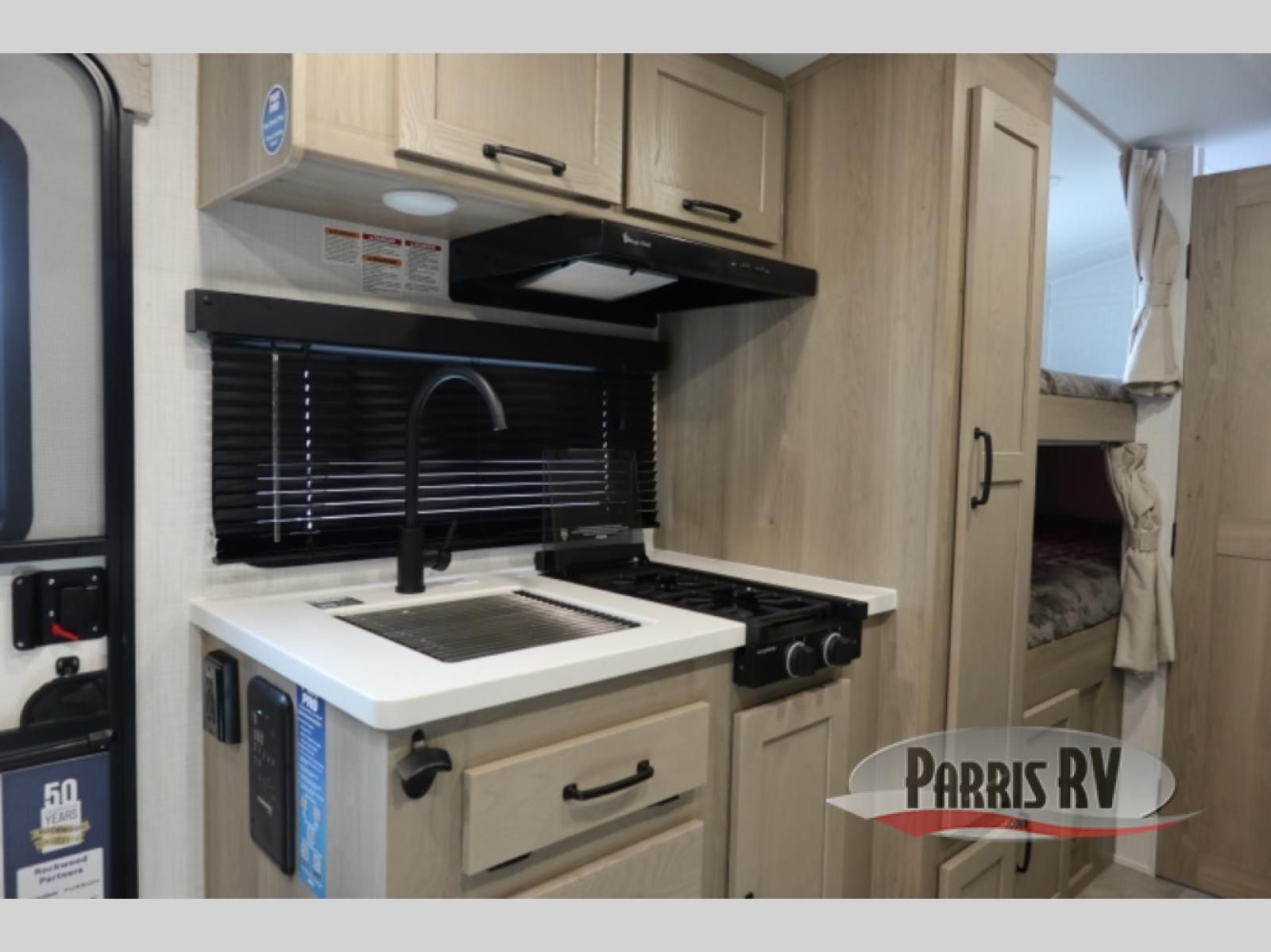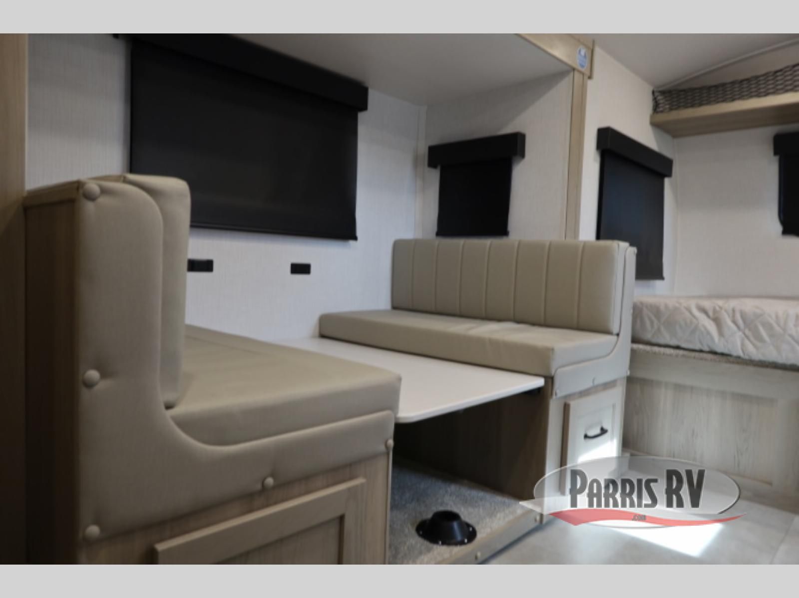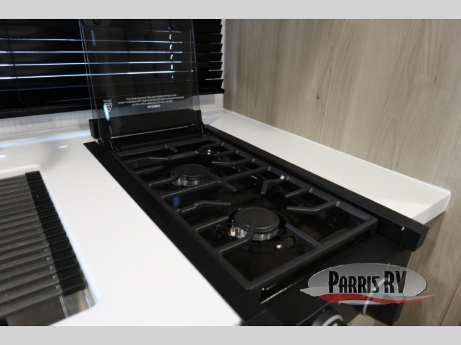 You're going to love camping with your family or friends in this spacious bunk model! The bunk beds will be perfect for little ones, while you take the front full-size bed. There is also a 44" booth dinette within the slide out for additional sleeping and seating space. The kitchen includes everything the chef will need to prepare meals each day, including a recessed cooktop, microwave oven, and a 12V refrigerator for perishables. If the weather is nice, you may just find the chef outdoors cooking on the outside griddle under the 14' power awning. And check out the exterior bike door that will be perfect for bikes, luggage, or extra camp gear. The optional Power Package available on this model includes three 200W solar panels, a 460 Ah Mastervolt MLI lithium-ion battery, two smart remotes, and more off-grid features!