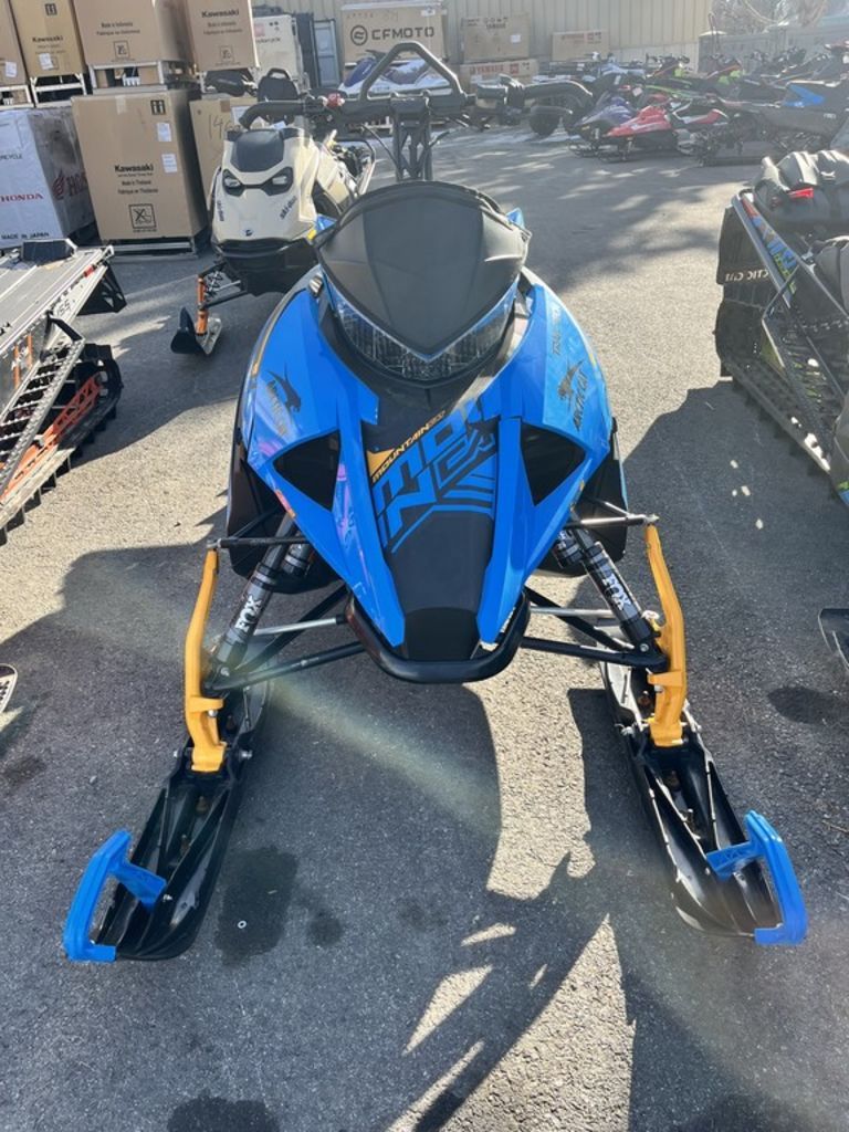2023 Arctic Cat® M 8000 Mountain Cat Alpha One 165"/3.00" Push Electric_Skye Blue Jump Higher. Climb Farther. Push the Limits. With bold styling and bolder moves, the Mountain Cat is built for next-level riding. Incorporating cutting-edge features including ALPHA ONE® Single-Beam Rear Suspension, FOX® FLOAT 3 QS3 shocks, and ATAC® Adjustable On-the-Fly Suspension, the Mountain Cat shows even the most diehard thrill-seekers the ride of their lives. DIE-HARD THRILL-SEEKERS' DREAM COME TRUE A powerful, next-gen 8000-Series C-TEC2™ 2-Stroke engine and ALPHA ONE Single-Beam Rear Suspension work together to create a ride without a single compromise. If you're looking to carve your way through the backcountry with ease and style, meet the M 8000 Mountain Cat ALPHA ONE. Features may include: UNMATCHED CONTROL ALPHA ONE™ SINGLE-BEAM REAR SUSPENSION This revolutionary single-beam rear suspension changes the game for mountain snowmobiles. The unique design doesn't trap snow, keeping the sled light and allowing you to stay on top of the snow with ease. With more control and maneuverability than any other mountain sled, you can carve up the mountain seamlessly. SMOOTH POWER DELIVERY ADAPT™ CVT SYSTEM With its lightweight, narrow design that increases performance and belt life, as well as the industry's only self-adjusting clutch, the ADAPT™ CVT system provides better throttle response, smoother power delivery, and a ride like no other. UNPARALLELED VERSATILITY FOX® FLOAT QS3 SHOCKS ALPHA ONE™ suspension is easily adjustable for ride and intensity with FOX FLOAT shocks: from the three-position QS3 on the ski and front arm, to a semi-locking QSL on the rear, you get easy adjustability for maximum deep-snow performance. SERIOUS POWER 8000-SERIES C-TEC2™ ENGINE This twin-cylinder, 165-class horsepower engine will carry you through the toughest climbs and the biggest jumps all day long, all while packing a serious punch. OPTIMIZED FOR DEEP SNOW AMS FRONT SUSPENSION The Arctic Mountain Suspension (AMS) is built specifically to navigate through deep snow. With lightweight spindles and a precision engineered suspension geometry designed specifically with mountain riding in mind, the Mountain Cat is the ultimate ride for deep snow performance. INSTANT SUSPENSION CONTROL ATAC ON-THE-FLY SUSPENSION No more getting off your snowmobile to adjust your suspension. Easily switch between soft, medium, and firm suspension settings with the push of a handlebar-mounted button and watch the system immediately adjust your suspension. Available on select models. QUICK AND CONVENIENT PUSH-BUTTON ELECTRIC START The convenience of electric start is just one of the countless things that sets the Mountain Cat apart. With just the push of a handlebar-mounted button, you'll be up and moving.