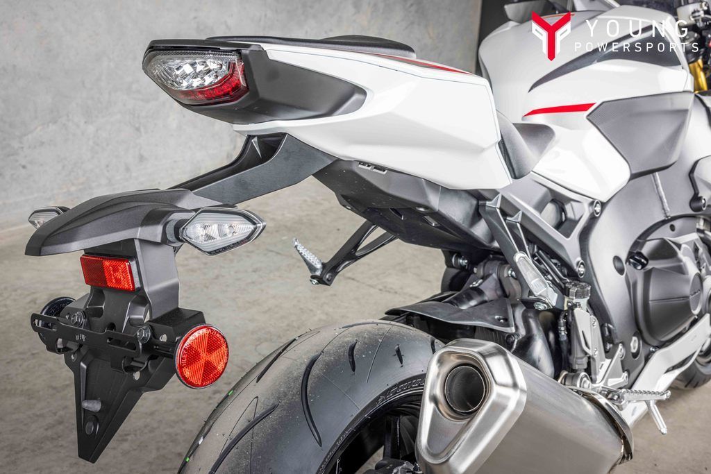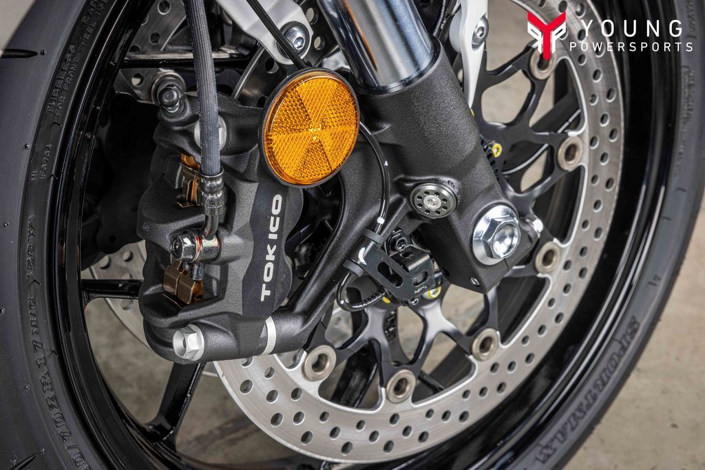 This flat-plane inline-four engine roars to life with high-compression pistons, offering the kind of free-revving power that makes riding a bike like this so much fun.