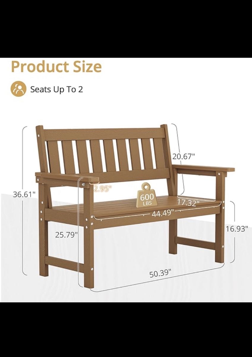 VenmoWe bought 2 of these last fall and ended not needing them for our fire pit, still unopened in origianal packaging so easy to pick up and move. Too late to return to amazon so ou rloss is your gain! All Weather: LUE BONA outdoor benches, made of sturdy HDPS, resist all climates—sun, snow, salt spray, and wind; They maintain a wood-like texture and color permanently, fade-resistant, and feature heavy-duty construction for durability and stability. Text Drew at 801-310-3738. These are in Draper. Asking $75 each or take both for $130 (Still 154.99 each on amazon!) Low Maintenance: Our heavy-duty HDPS outdoor benches don't rust like iron; They have smooth, flat edges, resist cracking, peeling, and shattering, and require no regular oiling or waterproofing; Easily clean with soap, water, and a soft-bristle brush Dimension: The outdoor benches weatherproof measures 50.4" (W) x 17.3" (D) x 36.6" (H) with a seat size of 44.5" (W) x 17.3" (D) x 16.9" (H) It supports up to 600 lbs and comfortably seats 2 people, featuring a comfortable ergonomic backrest and ample space Multiple Scenes: The outdoor bench with rich colors and strong texture blends seamlessly with any setting; Great for garden, porch, balcony, and courtyard, offers comfort for rest and socializing, combining form and function Assembly: You can scan the QR code to obtain the installation video; It comes with a detailed instructions, hardwares, and tools for quick setup