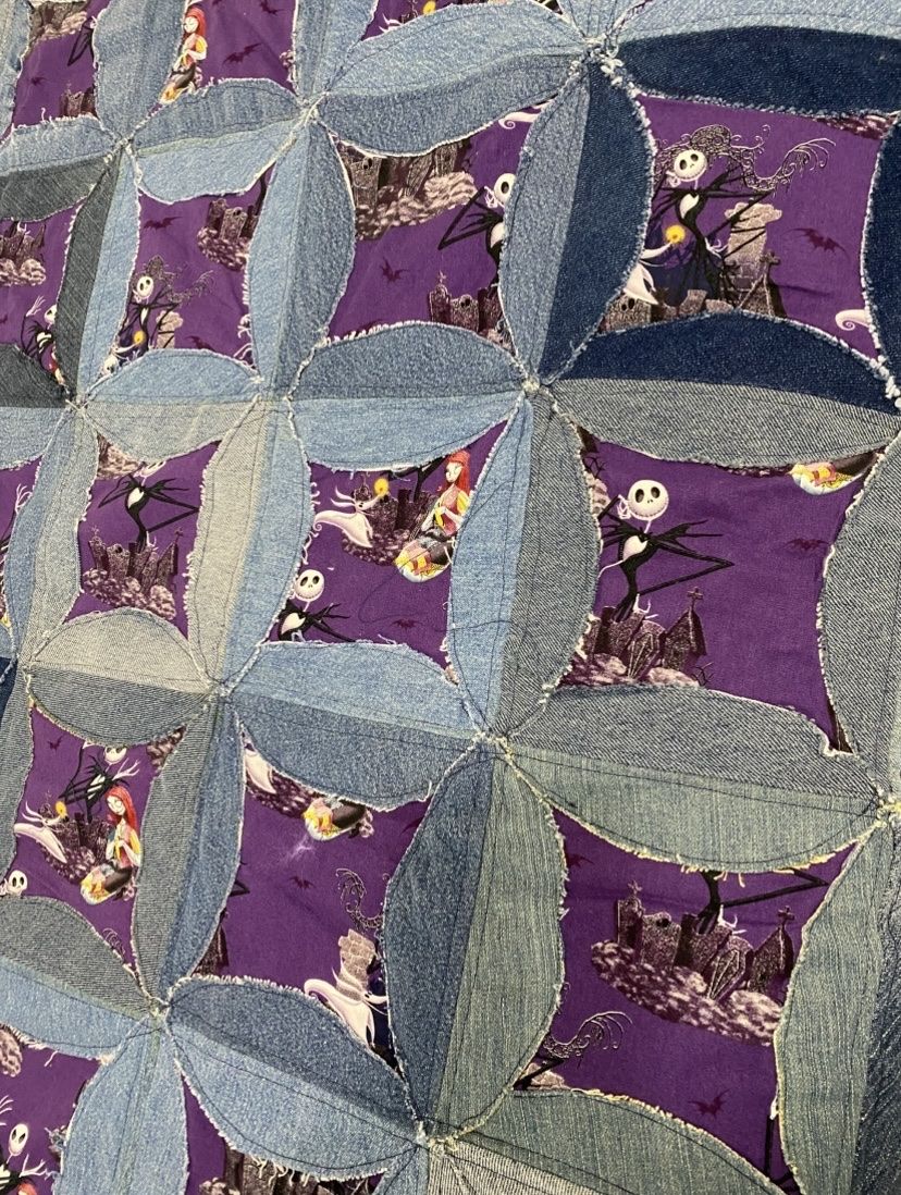 Beautiful Patch Work Reversible ~ Blue Jeans ~ Nightmare Before Christmas Quilt