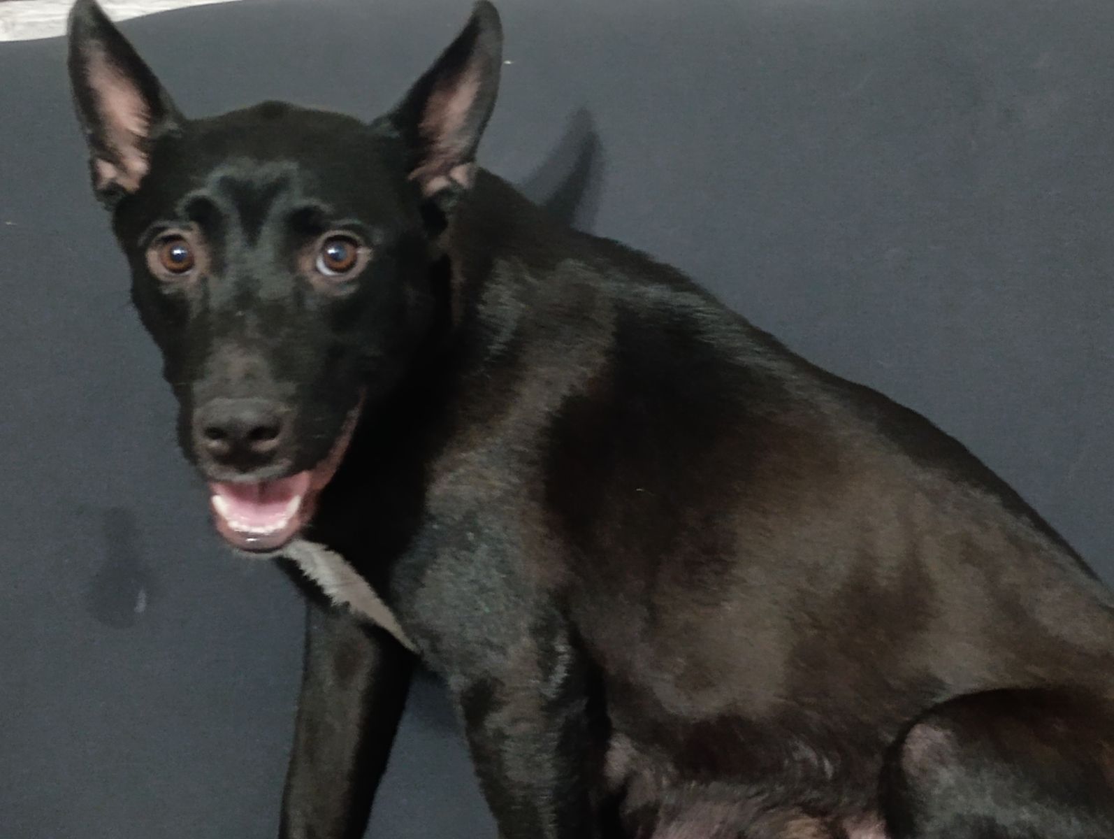 Female is a beautiful one-year-old Lab/Heeler mix. I took her in as a foster while she had her puppies, and now she’s ready to find her forever home. She is hyper and needs a yard.