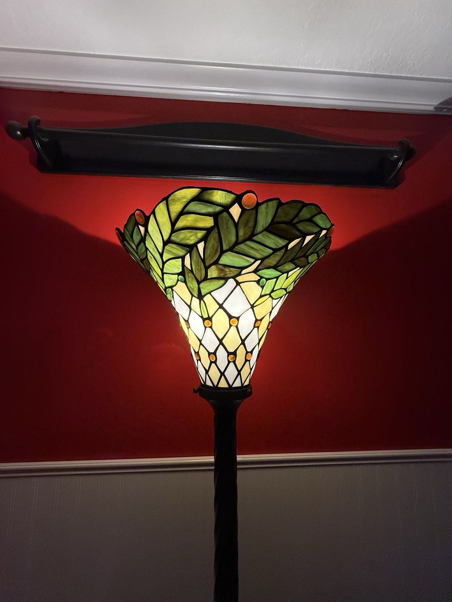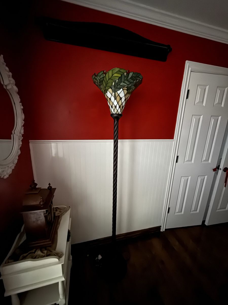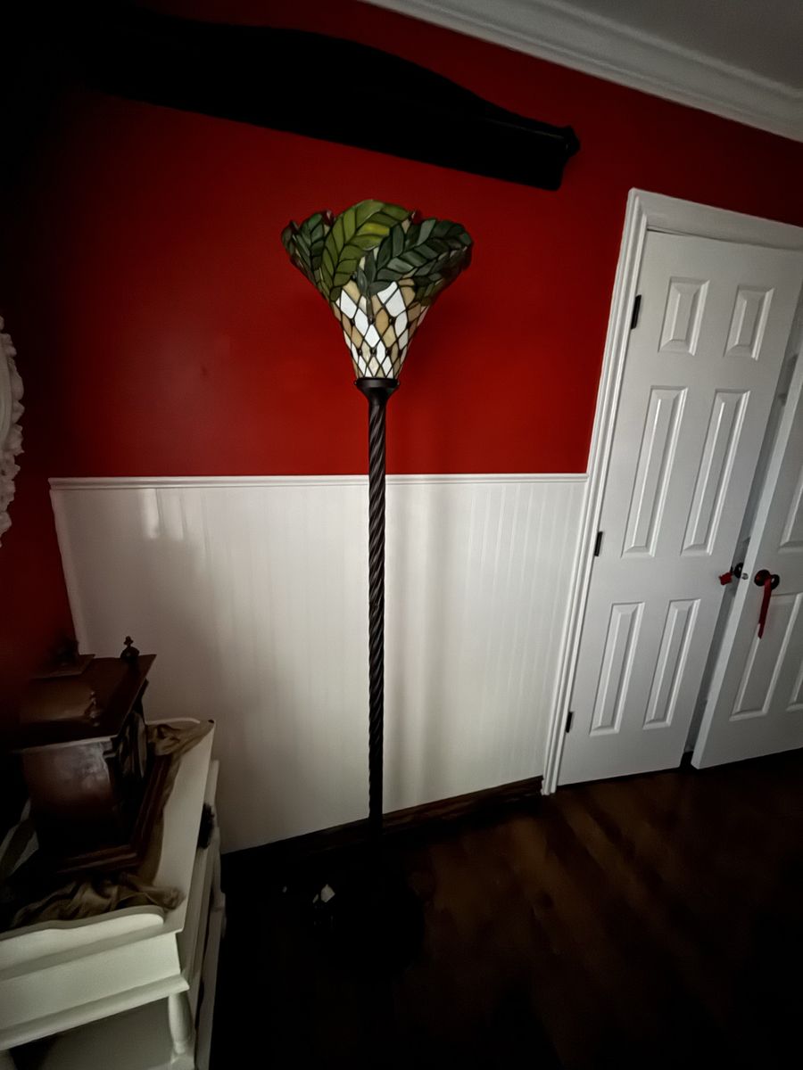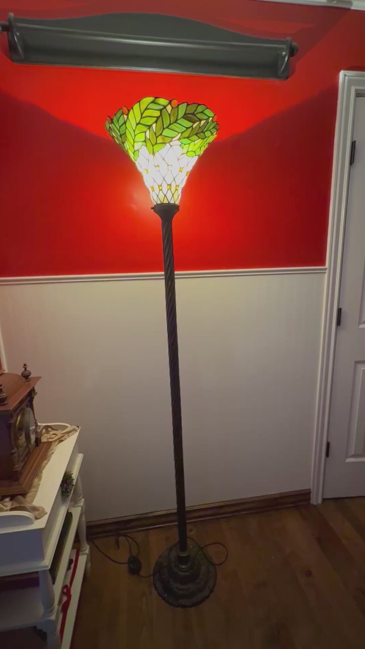 Tall vintage style Tiffany stained glass floor lamp
