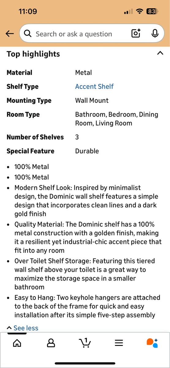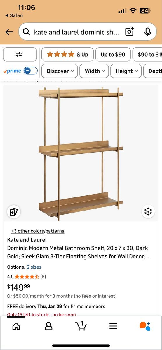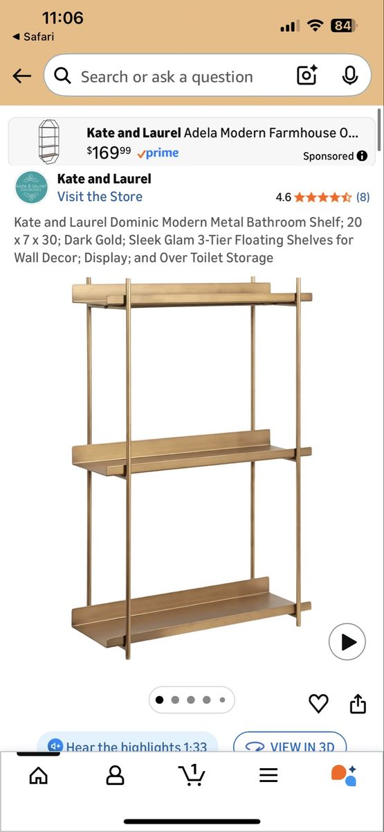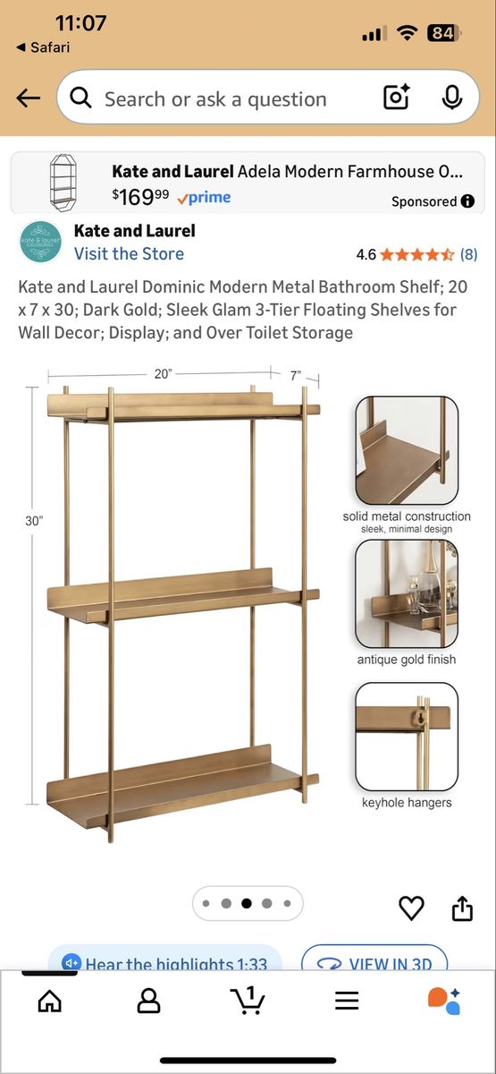VenmoBrand new in box. Dark gold three tier wall shelf. Currently sells on Amazon for $150