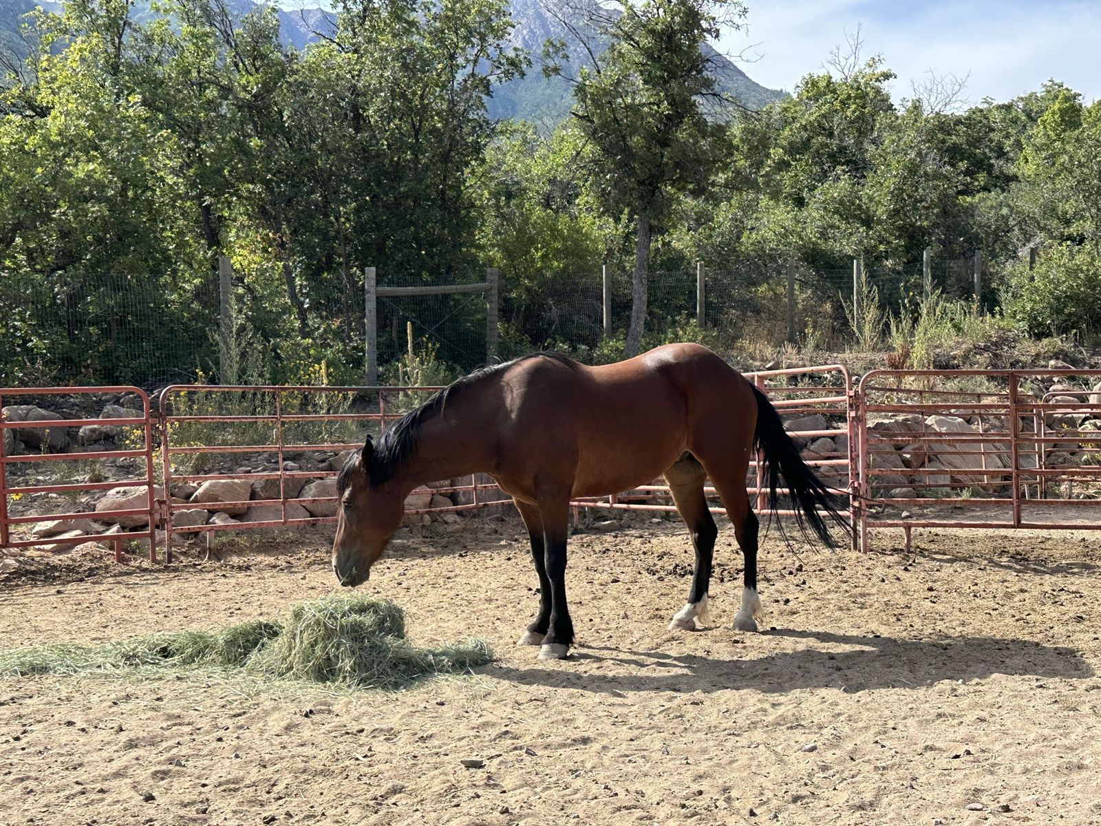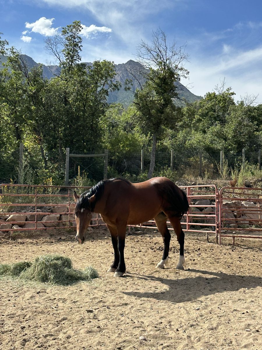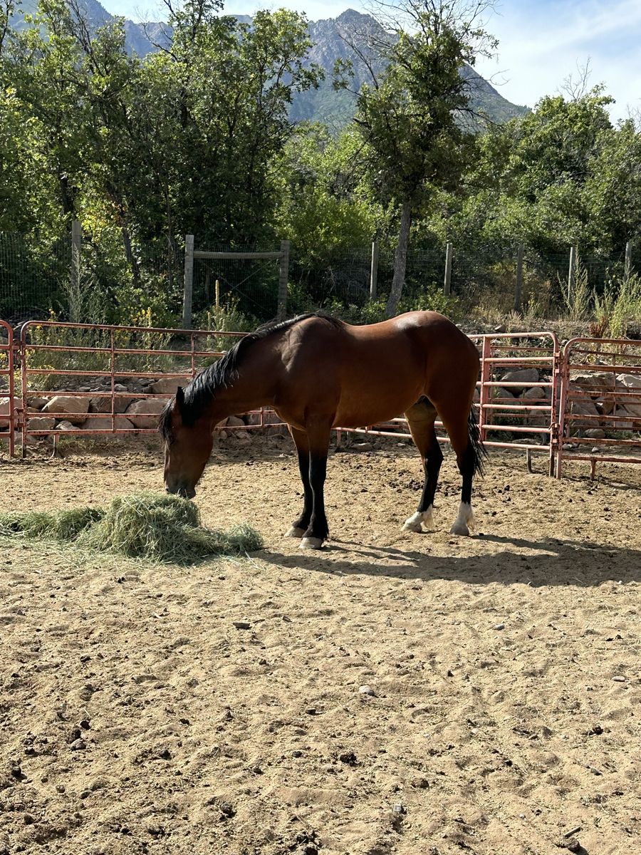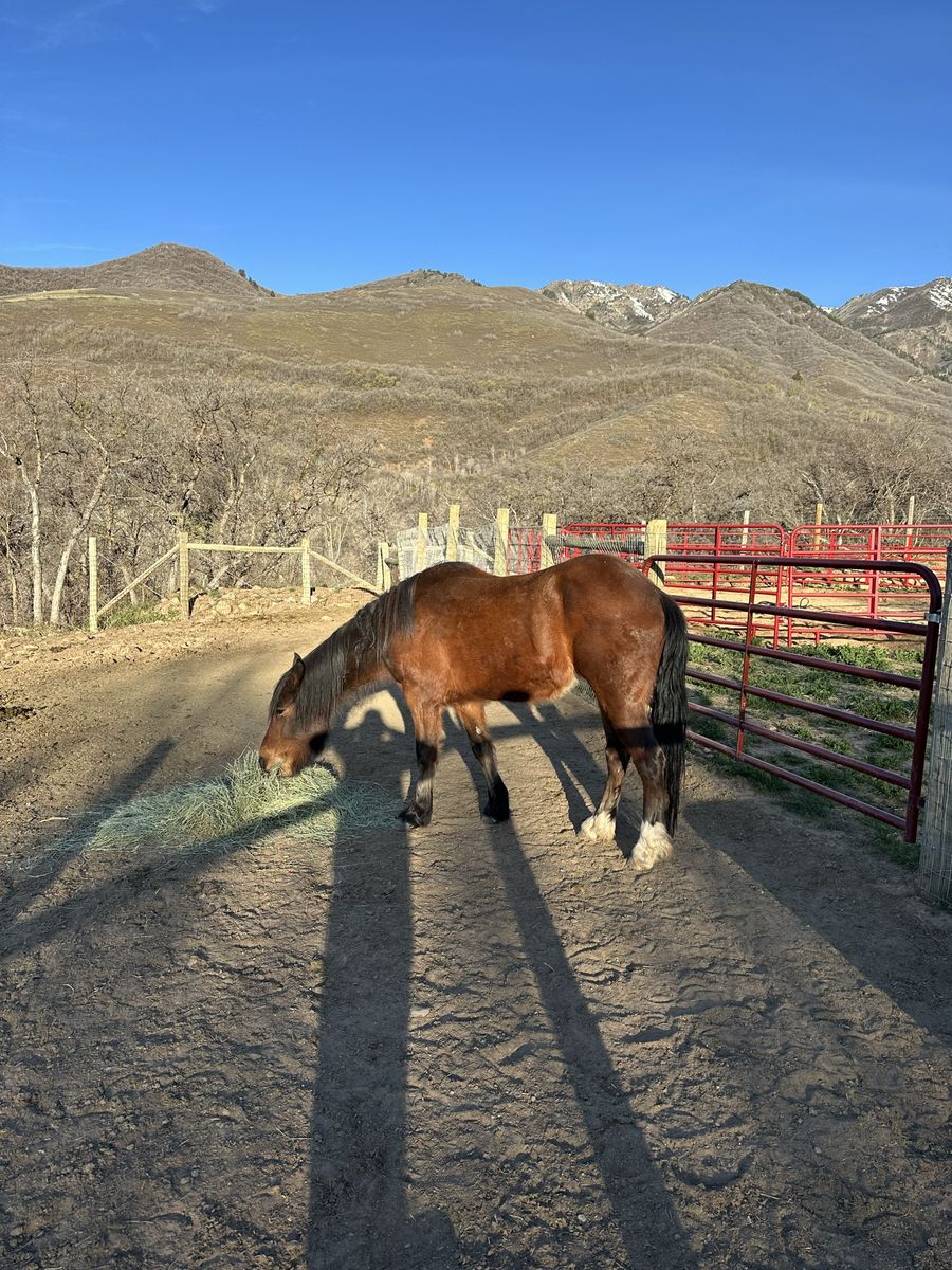 5 y/o half draft stands about 15 hands tall needs a lot of work I just don’t have the knowledge. He rides great if he’s not at home. At home he thinks he’s the boss. Last time he was rode was back in August. Recently had his hooves trimmed but no shoes.