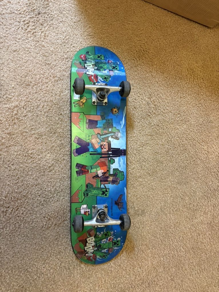Minecraft Skateboard with graphics on the bottom. 31 Inches long