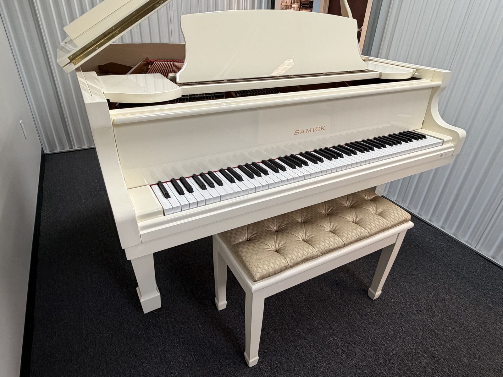 Selling a Beautiful Ivory Samick SG-155 5’1” Grand Piano. All our Pianos have been fully refurbished, cleaned (sterilized), polished, regulated/tuned, and made to be in as Like-New Condition as possible. All our Pianos come with a Lifetime Guarantee. Price also includes Free Delivery anywhere along the Wasatch Front and Northern Utah (outlying areas for a nominal fee). Trade-in options are available. We accept all major credit cards. This piano is priced at $9500. We currently have around 30 pianos to choose from. For an inventory list, pictures and prices, or to schedule a private showing give us a call (214-783-5972 or 801-698-3806) or visit our website at www.refurbpianos.com