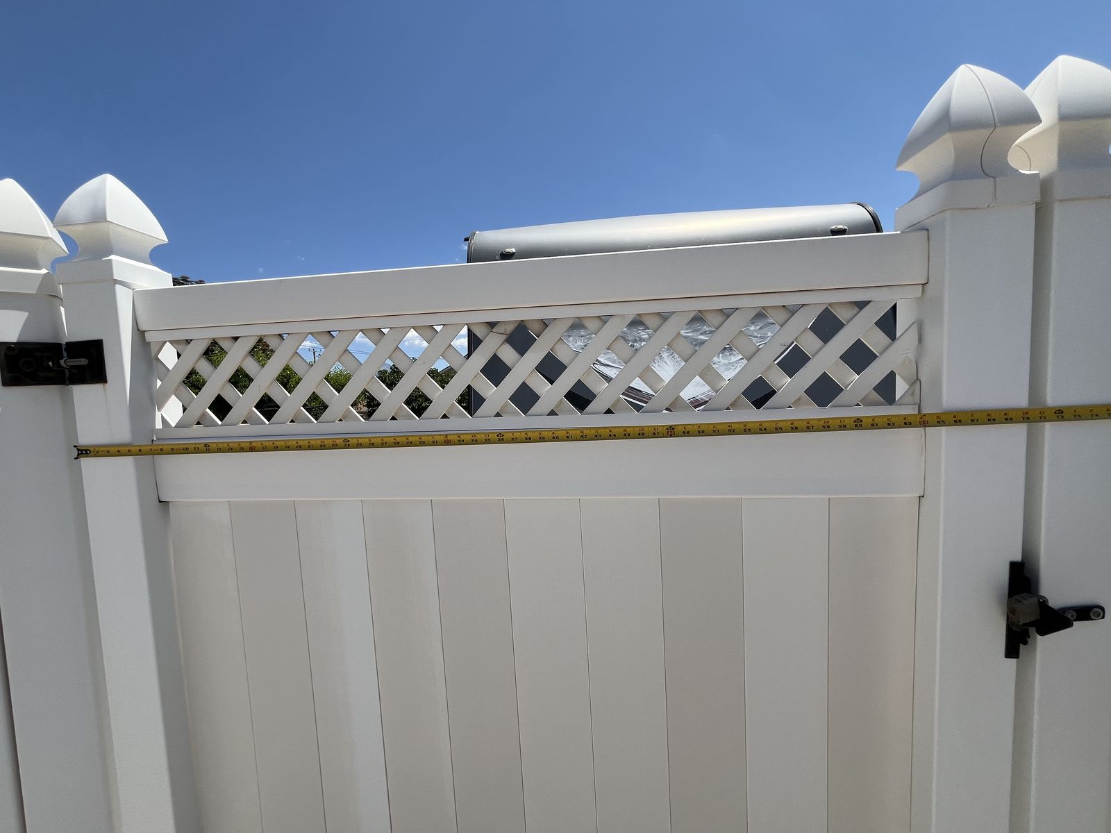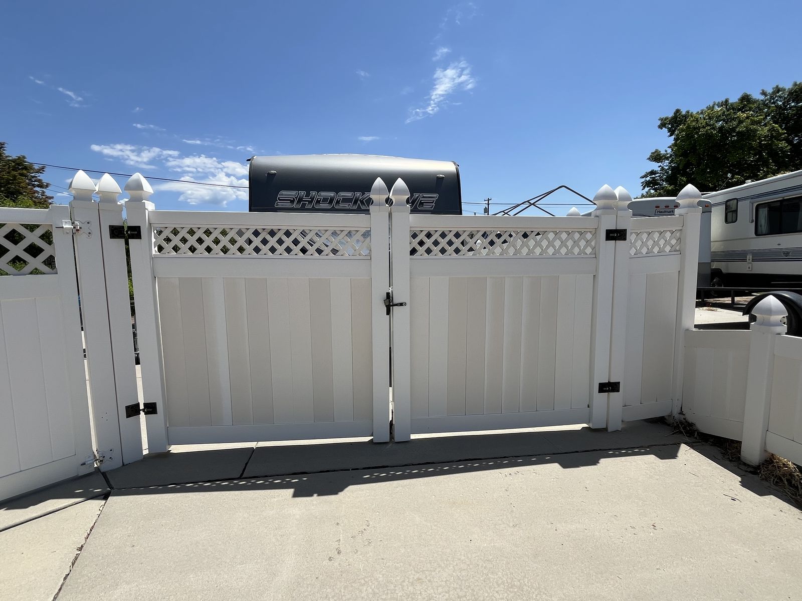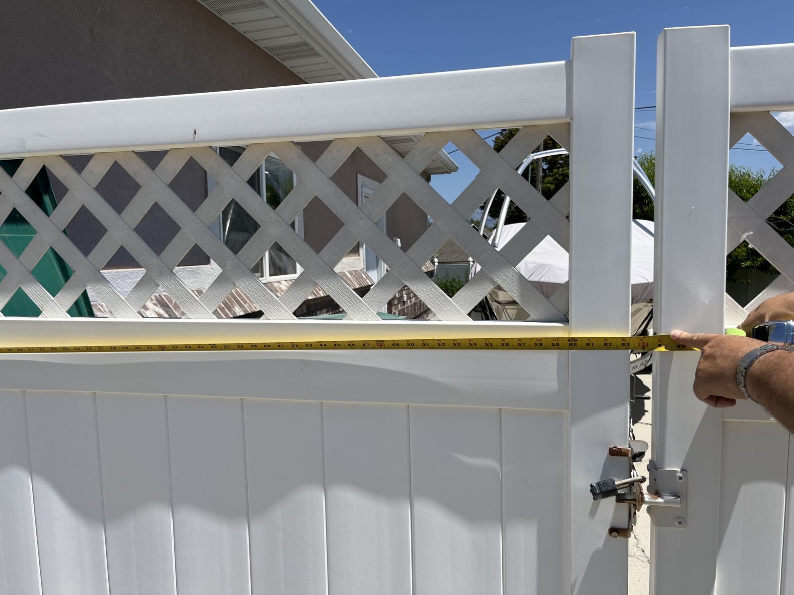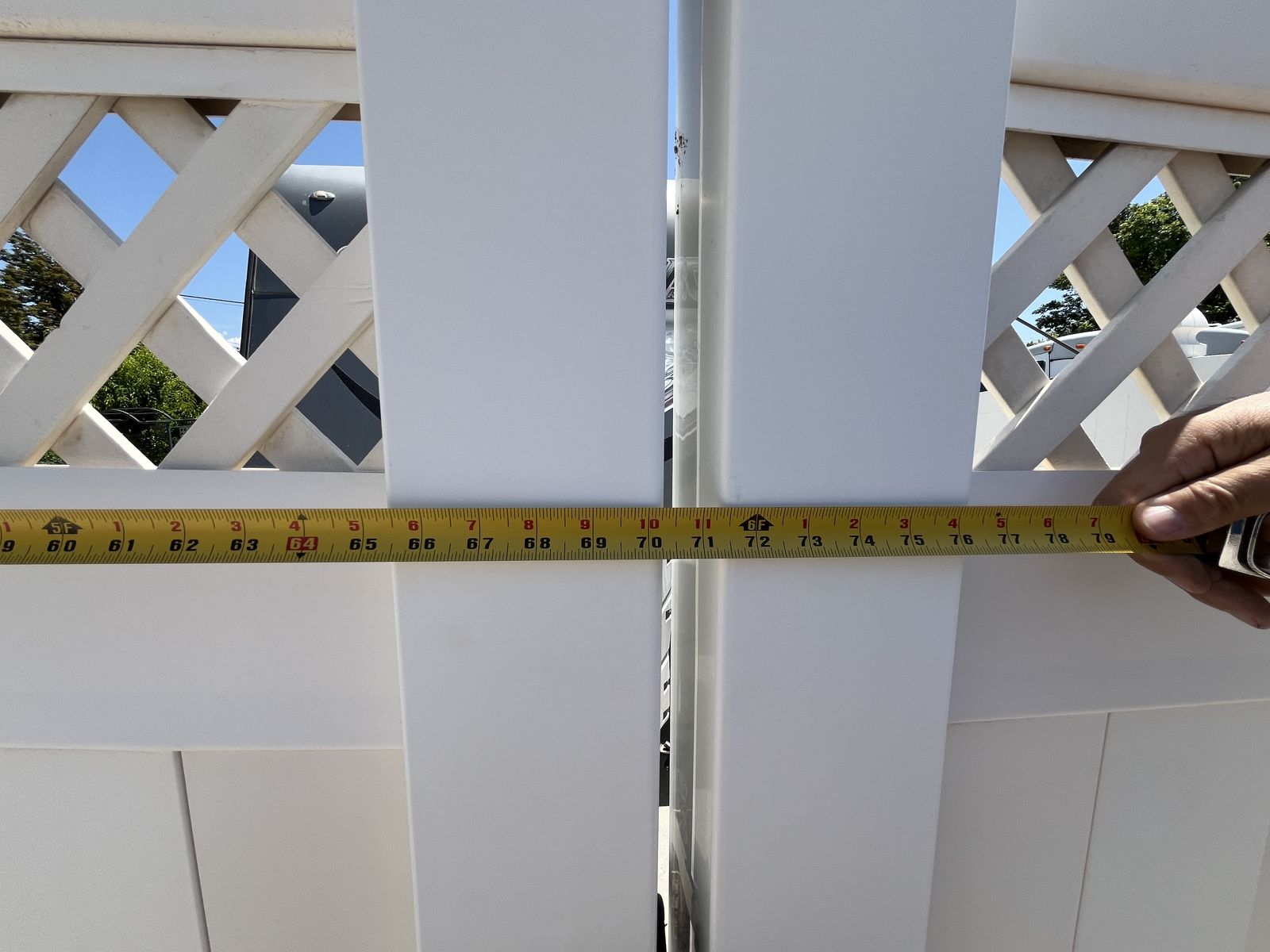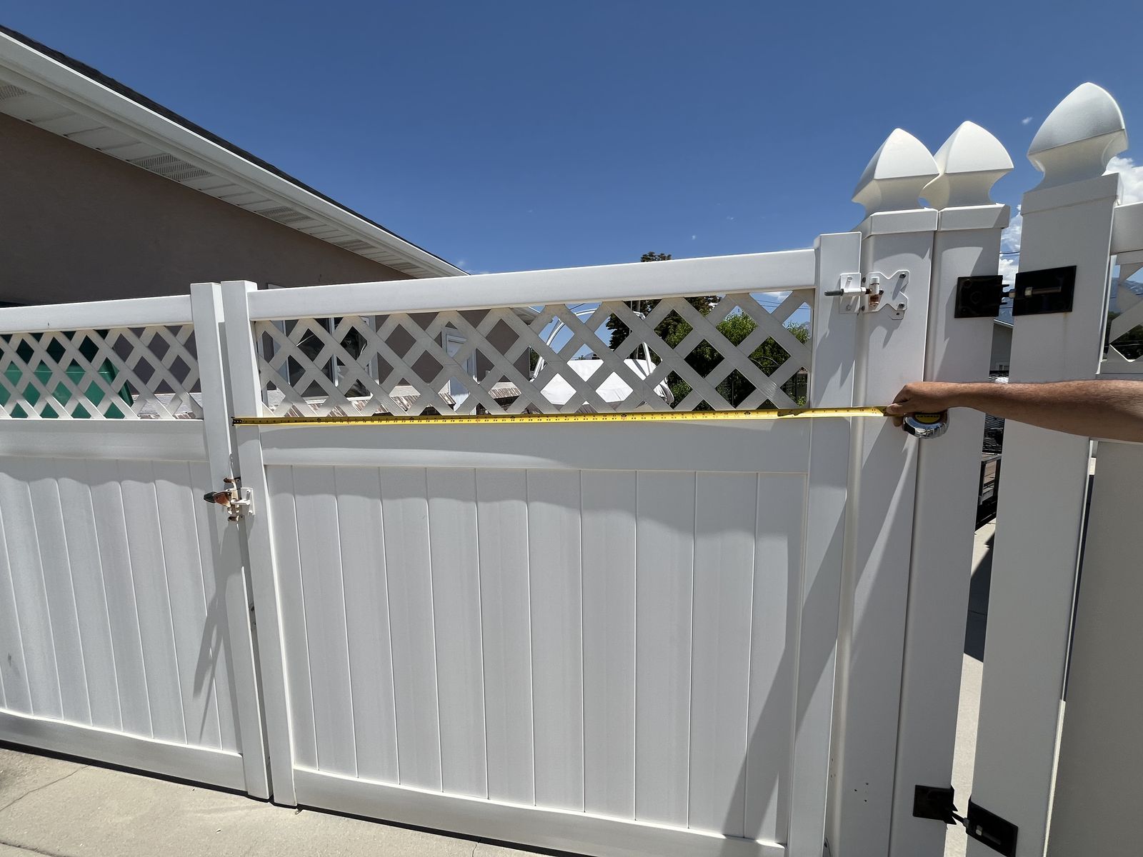 VenmoTwo vinyl gate sets, one gate is appx 5 ft 3" the other one is 5ft 9" for a total of 11.2 feet. Steel reinforced gate, no center post.