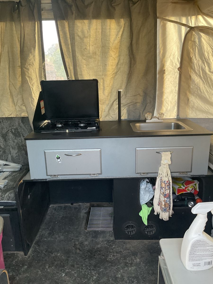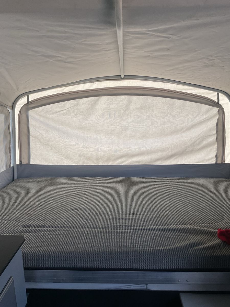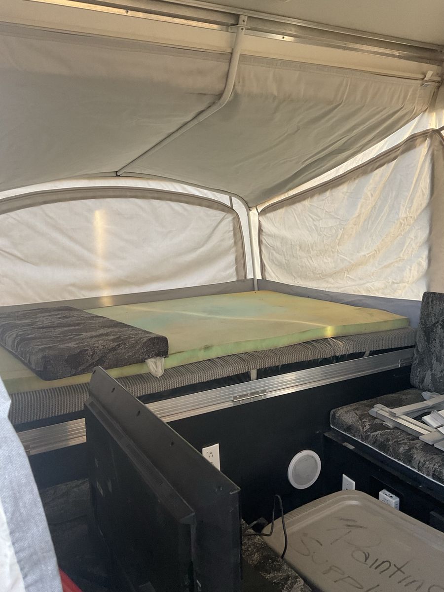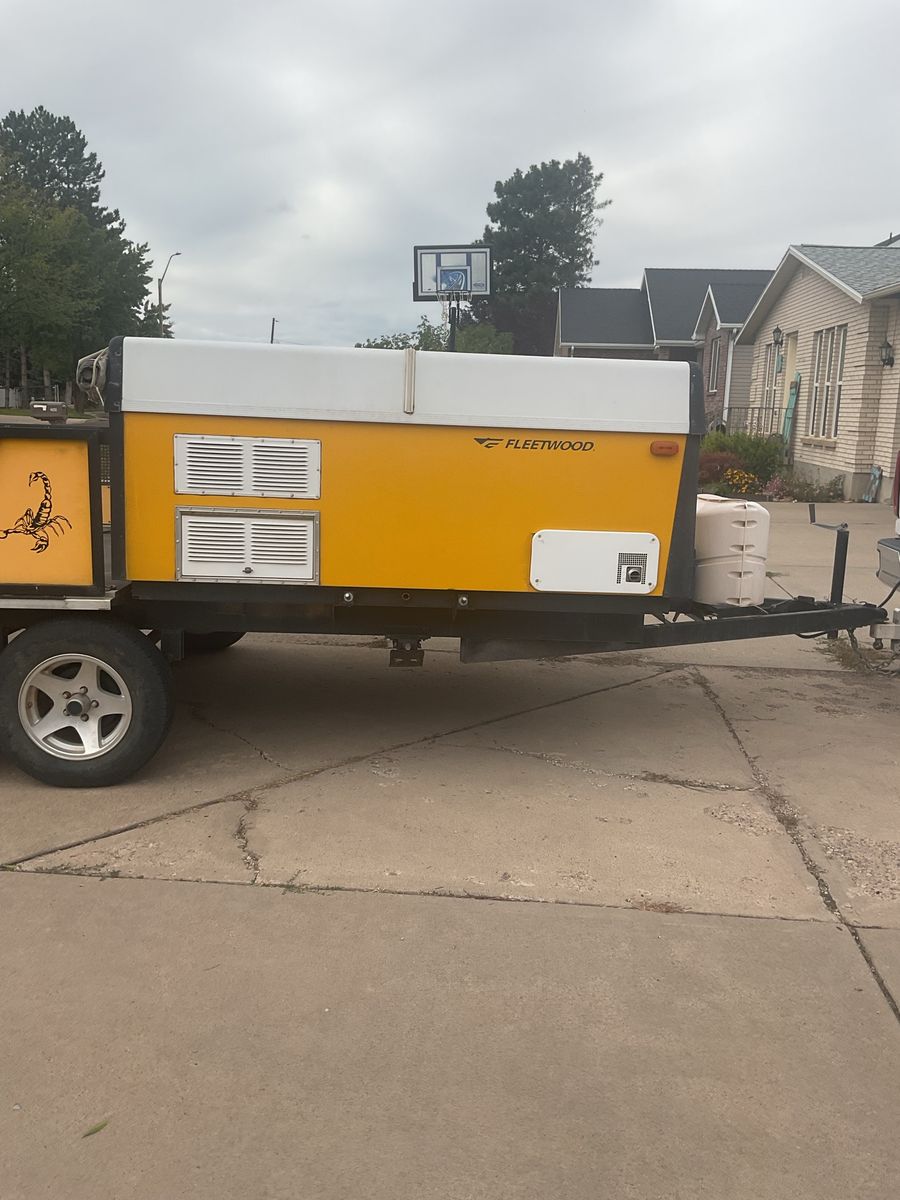 Awesome pop up trailer! We absolutely love this trailer! It is quick to set up and is in great condition. Deck holds our Polaris General. Weight is 5400 lbs. No rips or tears in the canvas Price is firm No trades