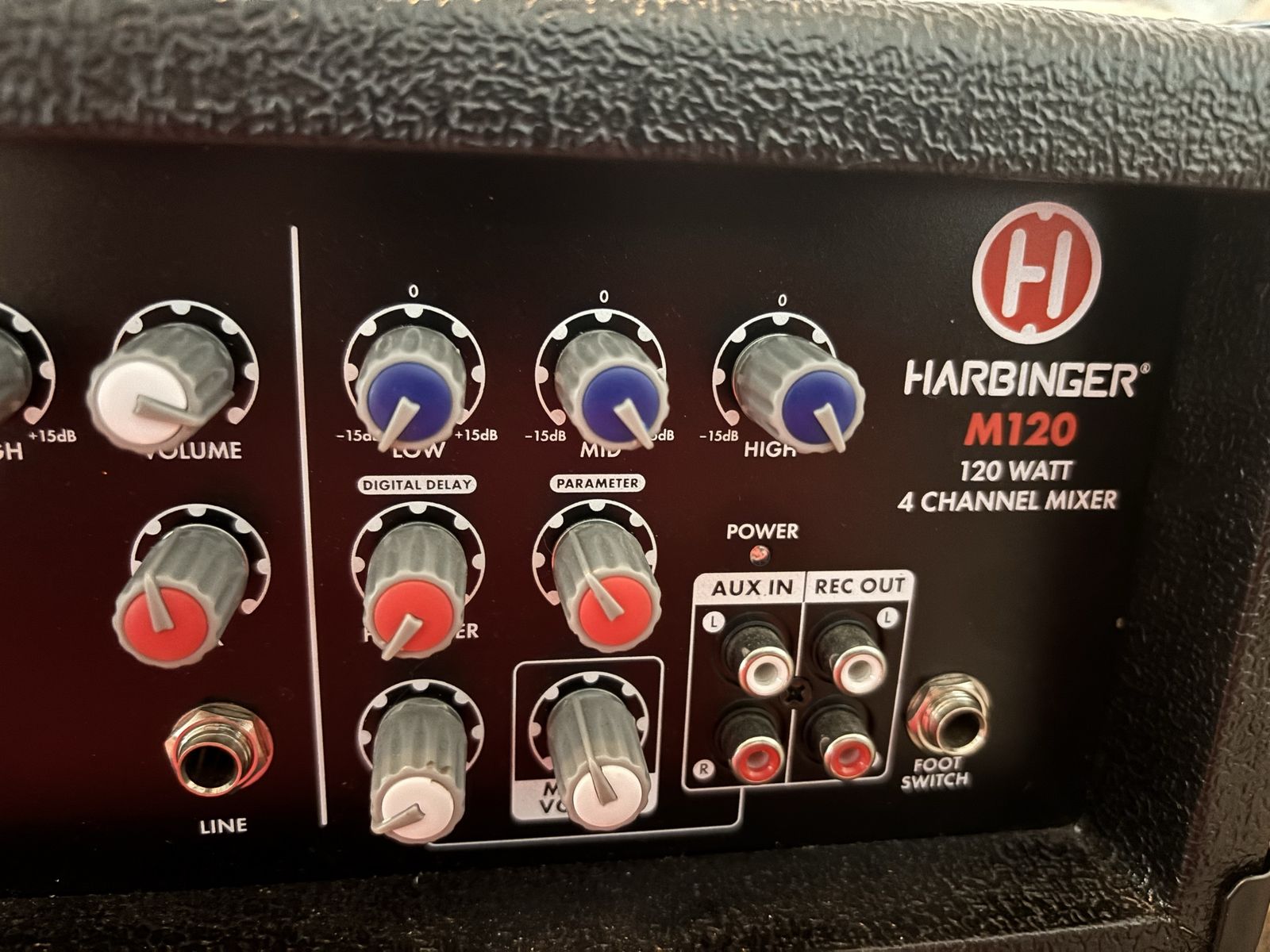 Nice harbinger 4 channel mixer in great working condition!! Looks and works good, all you music guys should jump on this! Comes with power cords as shown ! This exact mixer is 120.00 or more on Amazon right now as shown in photos! Don’t pay retail prices, call Dustin instead at 801-205-3404, I need it gone!