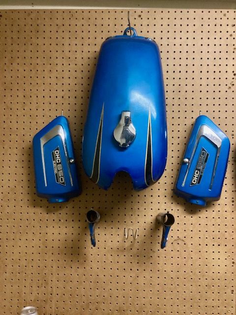1973 Yamaha tx650 tank, side covers, headlight bucket (not pictured) and headlight mounts. All in great shape. $200.