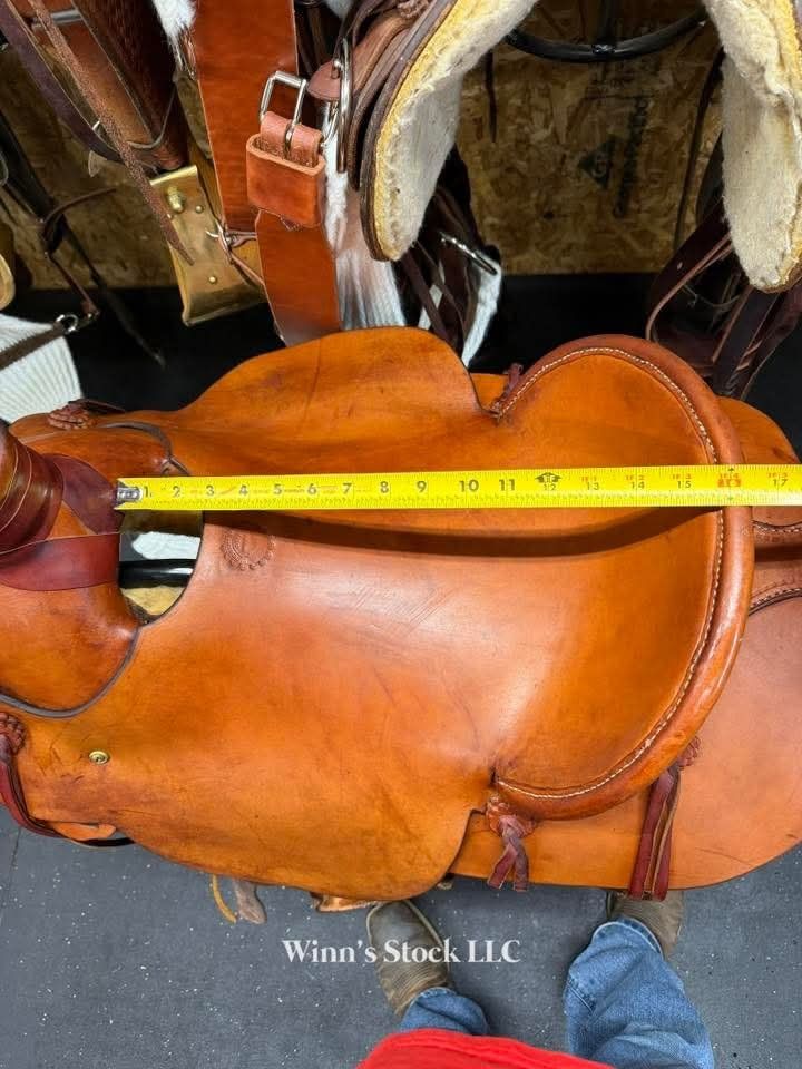 Here is a dandy handmade saddle. This wade is nice and light weight! You won't find many built like this. Designed for older sway backed horses. Very nice saddle here at a price that's hard to beat.