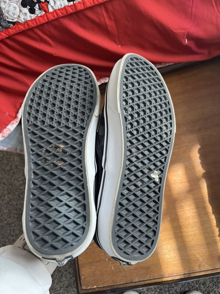 VenmoThese black checkered slip on vans have only been worn a few times. Size 8W/6.5M paid 69.00 asking 40.00.