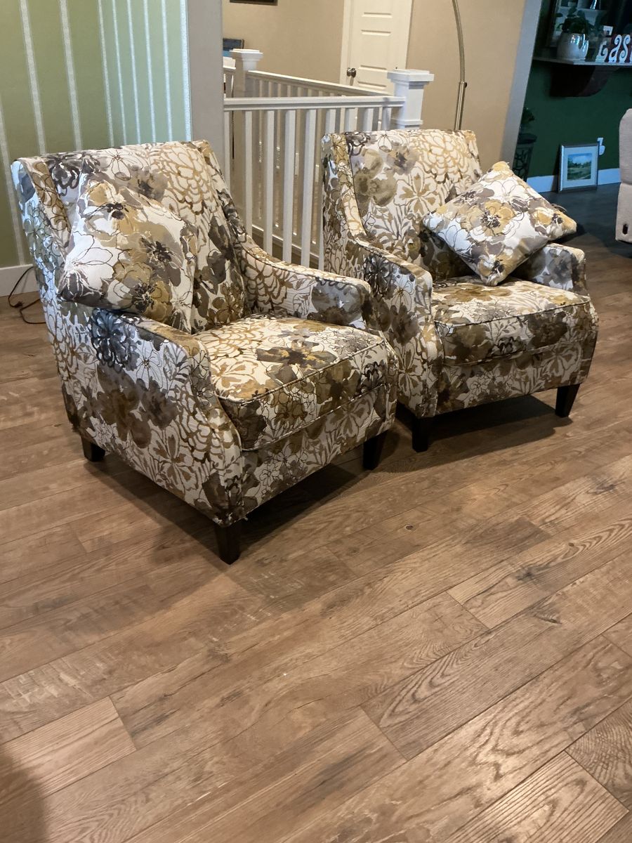 VenmoBeautiful matching upholstered accent chairs in excellent, like-new condition. These floral chairs were purchased from Boulevard Home Furnishings in St. George in 2018 for $399 each and were used only as accent chairs in the home, so they have seen very little use. They work beautifully as living room chairs, occasional chairs, or reading nook chairs.