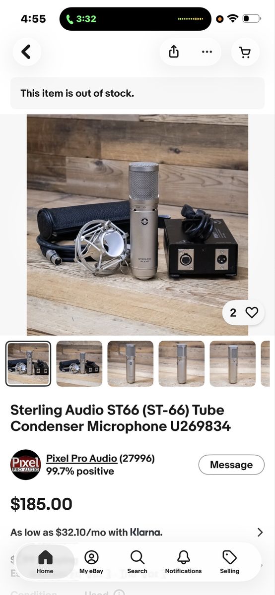 Nice sterling audio tube condenser microphone in good working condition!! Looks and works good, all you music guys should jump on this! This exact microphone is185.00 or more on eBay right now as shown in photos! Don’t pay retail prices, call Dustin instead at 801-205-3404, I need it gone!