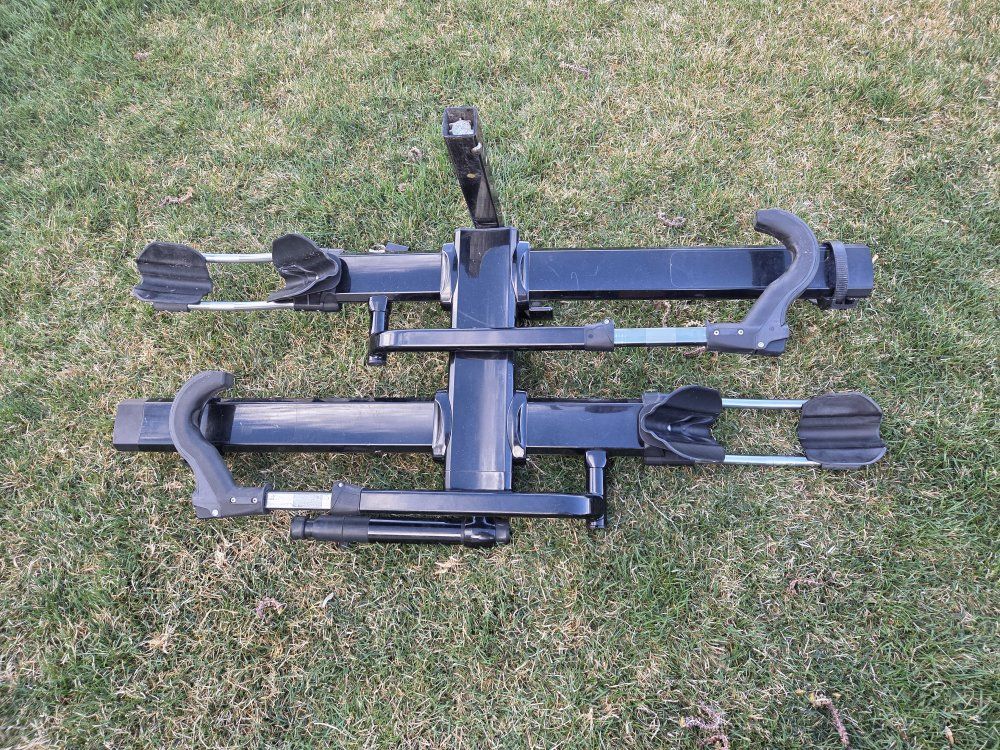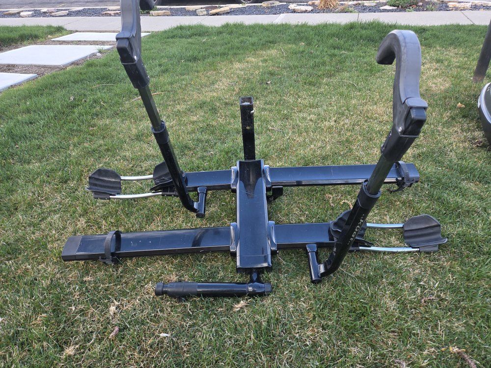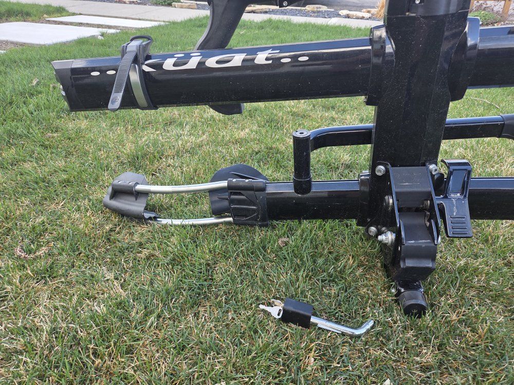 VenmoHello, selling our Kuat NV2.0 2 Bike Rack W/Bike Stand & Locks. This rack is in great conditioncondition, having been stored indoors when not in use. Designed for 2" hitch receiver. Will take on any bike rated to haul e bikes, but will take on any bike including 29ers, fat bikes with extra straps included, road bikes, gravel bikes. Has built in bike locks and hitch lock with matching keys. Has warranty info to register rack as your own. It is arguably one of the best and most durable racks on the market, perfect for all types of bikes, from road bikes to downhill mountain bikes. Key Features: Capacity: Securely holds two bikes, with a weight capacity of up to 60 lbs per tray. Universal Compatibility: Features an adjustable front tire cradle system and a rear tire strap design that protects wheels, accommodating a wide range of wheel sizes. Integrated Security: Includes fully integrated cable locks and a hitch lock for peace of mind. User-Friendly Design: Foot-Assist Pivot: A convenient foot pedal allows you to pivot the rack up or down without leaning your bike against anything. Intuitive Release: Front tire ratchet design with an intuitive release mechanism makes loading and unloading simple. Trail Doc Workstand: Comes with the integrated Trail Doc repair stand, making trailside or roadside repairs easy. Durable Construction: Composed of heat-treated aluminum with a metallic gray finish and orange anodized accents