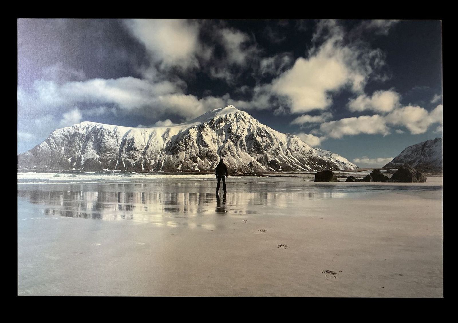 Clean, crisp, and visually dramatic without being overpowering. A great piece for anyone who loves mountain scenery, winter landscapes, or modern rustic decor.