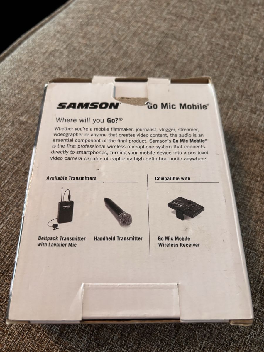 Nice new Samson go mic in torn up box! Excellent working condition!!! Perfect for any performer or if you walk around while presenting! This exact mic set up is 39.99 on Amazon right now as shown in photos! Don’t pay retail prices, call Dustin instead at 801-205-3404, I need it gone!