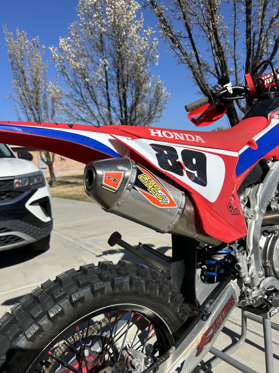 Super clean bike with low hours and about $3500 in upgrades. Including: moto xperts suspension with race tech gold valves and anodized lower fork tubes. Full Pro circuit t-6 pipe and Warp 9 wheels.