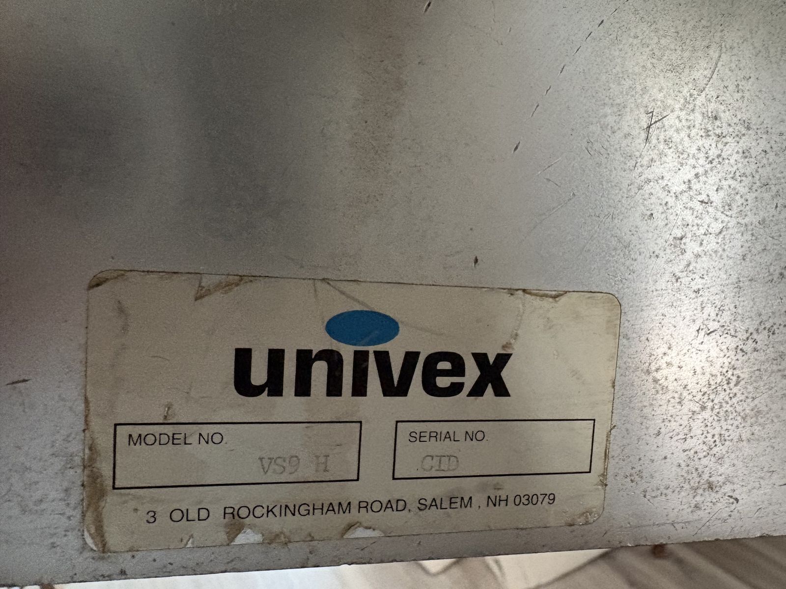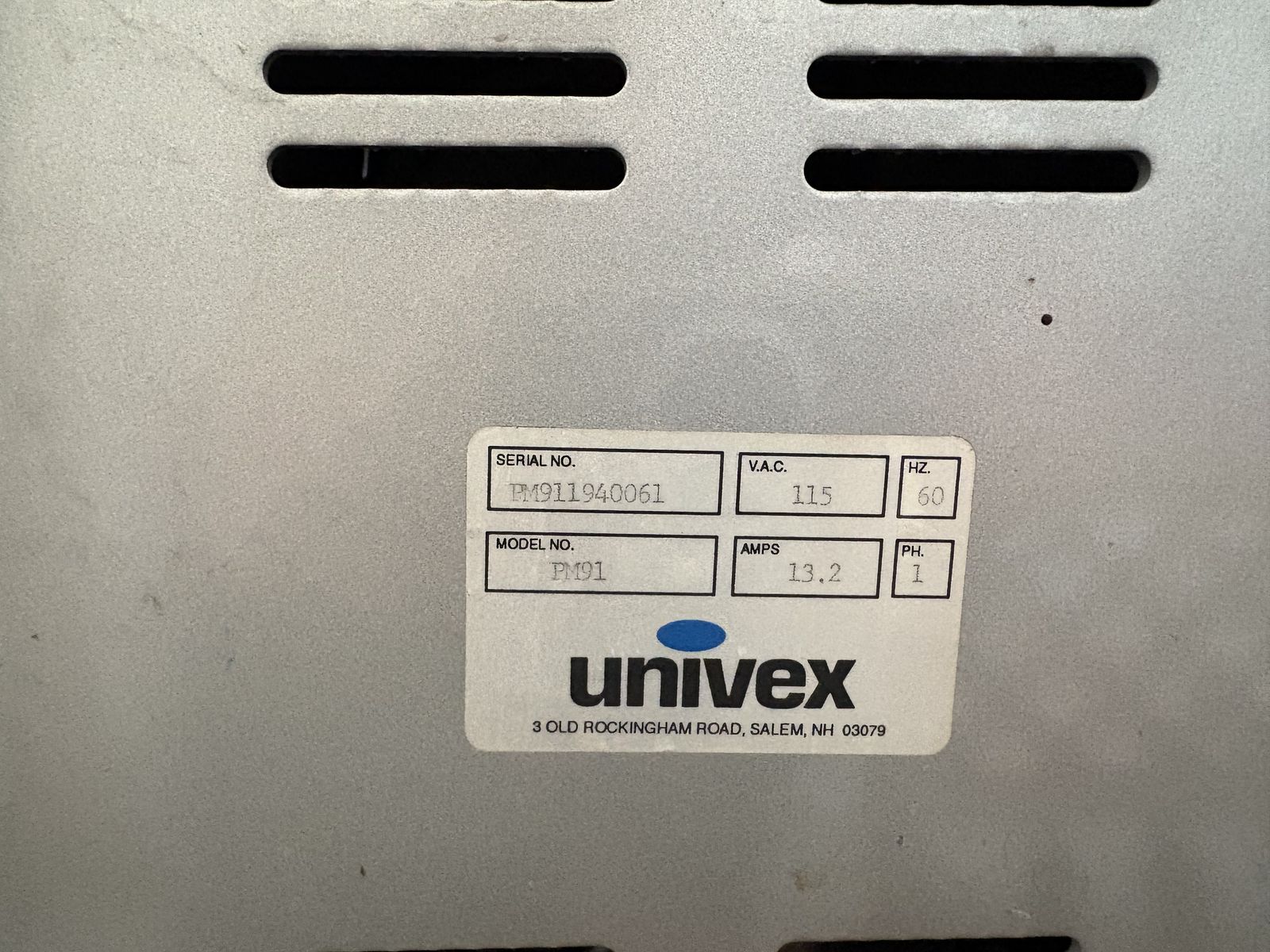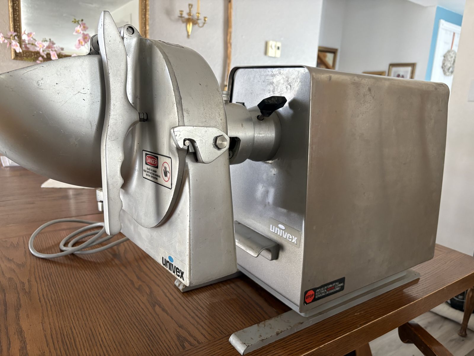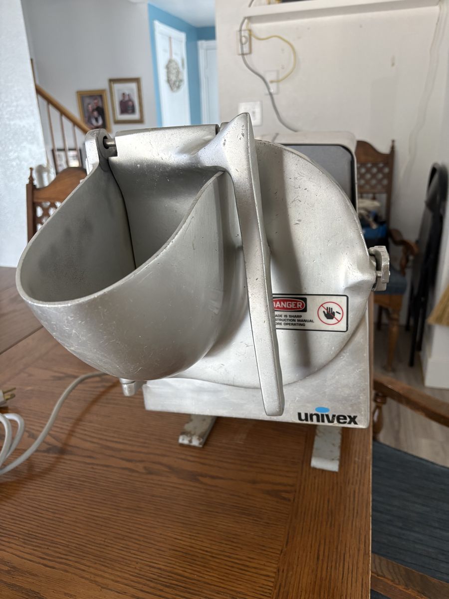 Univex PM91 food processor with shredded, slicer attachment.