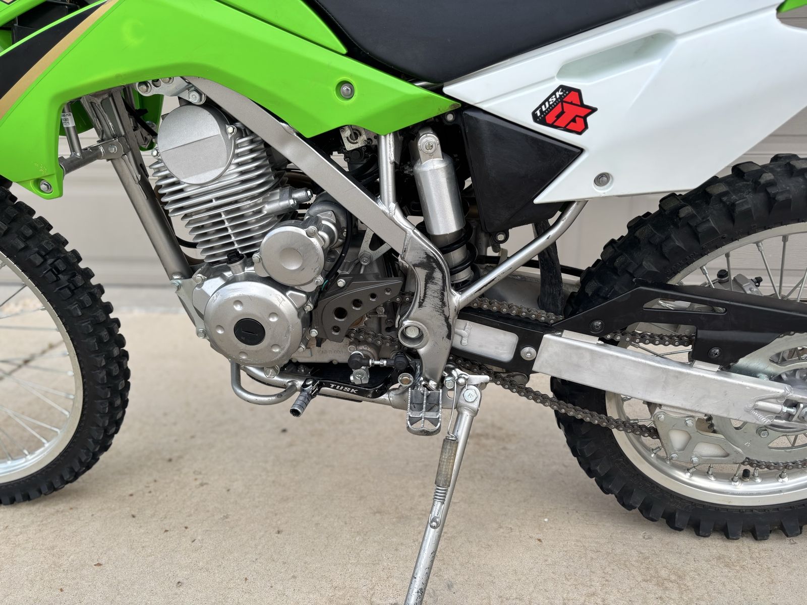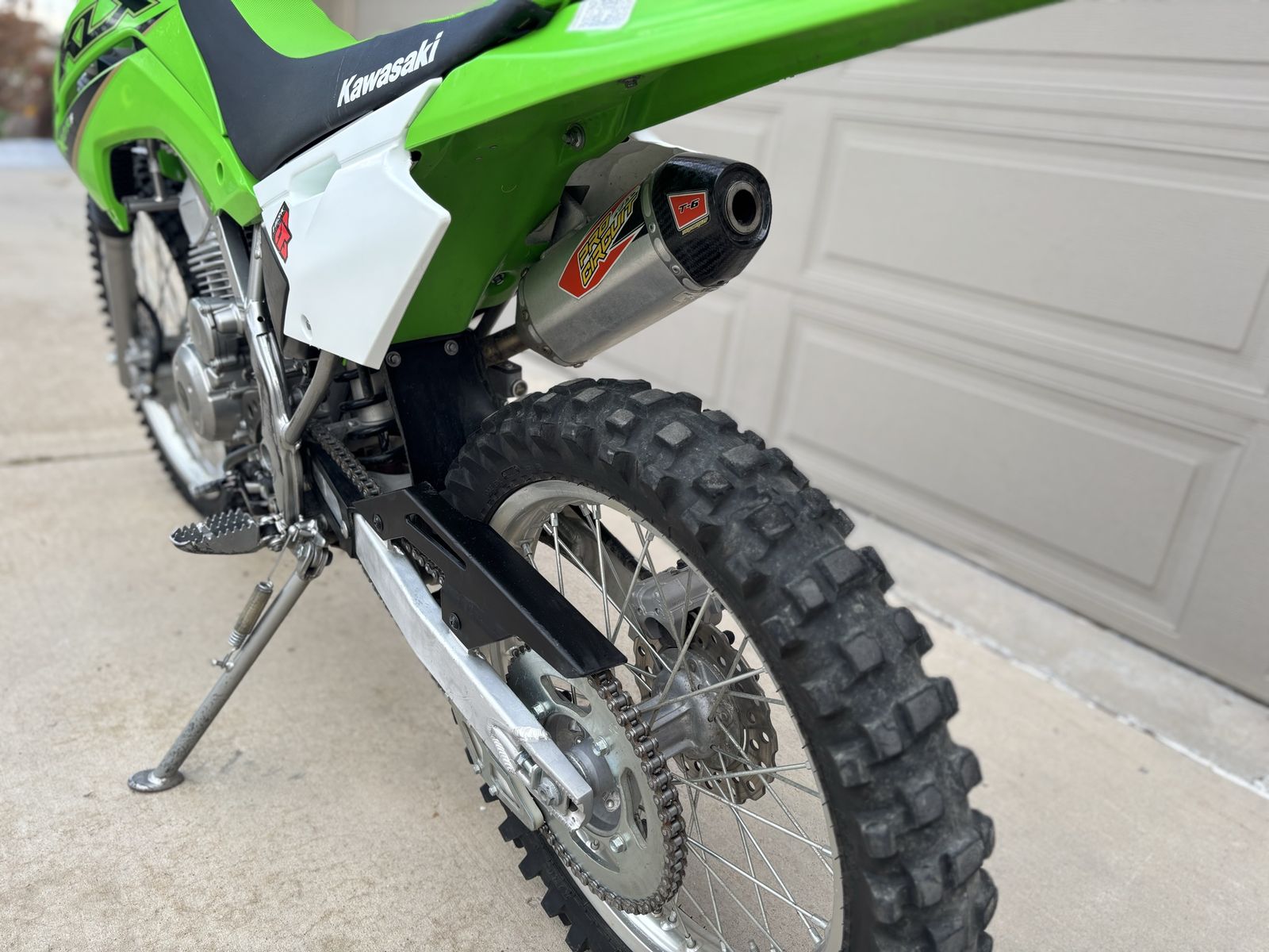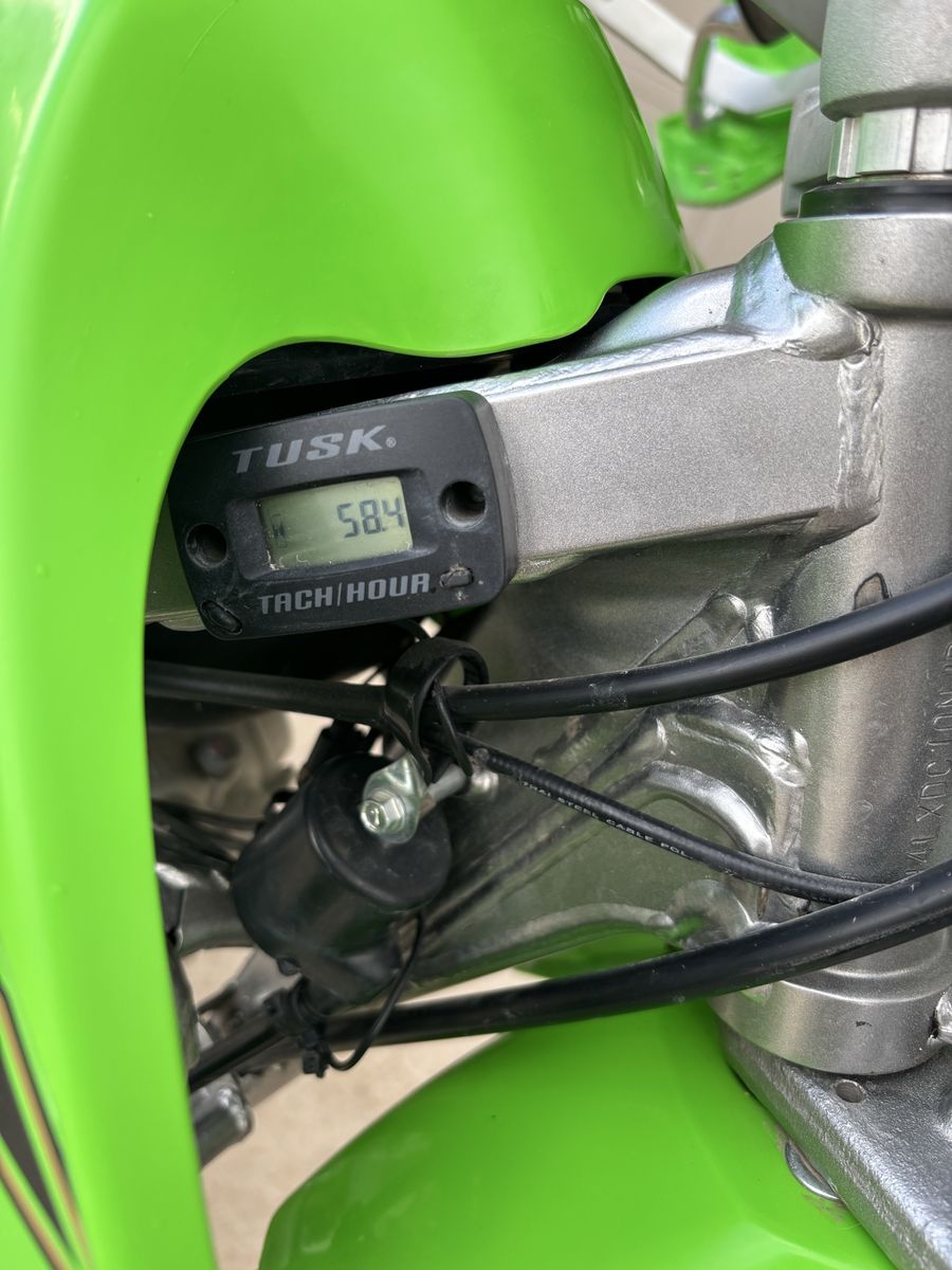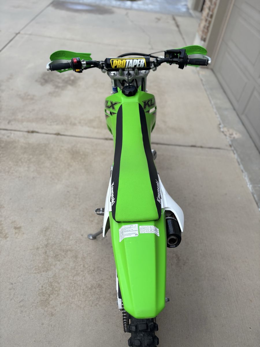 Great bike, kids have just outgrown it. This is the big bike version with 21” front tire and 18” rear tire. Has upgraded Pro Taper handlebars, tusk hand guards, and $400 upgraded Pro Circuit complete exhaust system. The exhaust makes it a little louder than stock and more power. It has a brand new battery. Been well maintained with regular oil changes and clean air filters. I have extra air filter and oil filters for it as well as a brand new shifter.