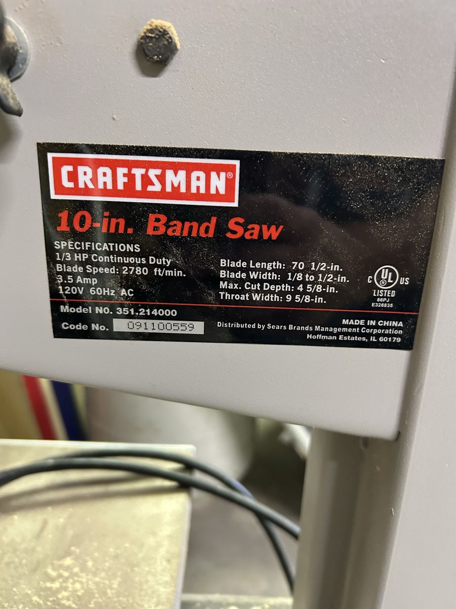 VenmoCraftsman 10” band saw. Very lightly used, I have figured out I am not a woodworker and no longer wish to keep up the pretense. I have decided to live my true life and it is not as a carpenter. My realization is your opportunity.