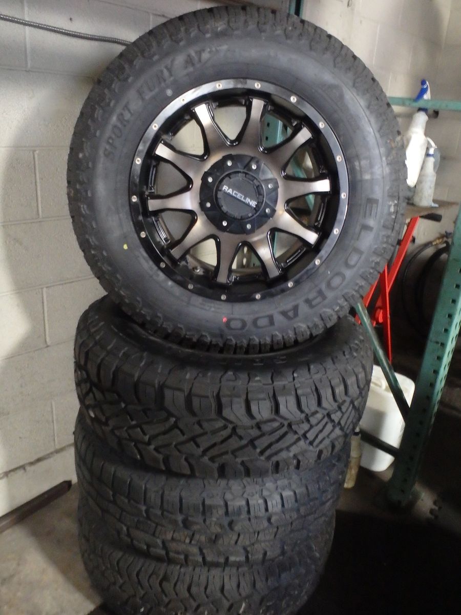 SET OF USED 18X9 J ET 18 RACELINEWHEELS AND USED TIRES, BOLT PATTERN 6x135/6X139=6X5.5 THESE WHEELS AND TIRES ARE IN GREAT CONDITION. THE TIRES ARE 255/70R18 AND THEY STILL HAVE PLENTY OF LIFE LEFT ON THEM WERE ASKING ONLY $780. IF WE NEED TO TRANSFER TPMS SENSORS FROM OTHER WHEELS ONTO THESE, WE WILL DO IT FREE OF CHARGE CALL FOR ANY QUESTIONS AT JOSE OR ROBERTO AT 801 878-4556 OR 801 410-4460 OR VISIT US AT J&J TIRES 7615 STATE STREET MIDVALE UTAH ,WE'RE OPEN MONDAY TO SATURDAY FROM 9:00 AM TO 6:00 PM, WE HAVE A LOT MORE AN USED TIRES AND BRAND NEW CALL US IF YOU ARE LOOKING FOR AN OTHER SIZE WE MAY HAVE'IT....