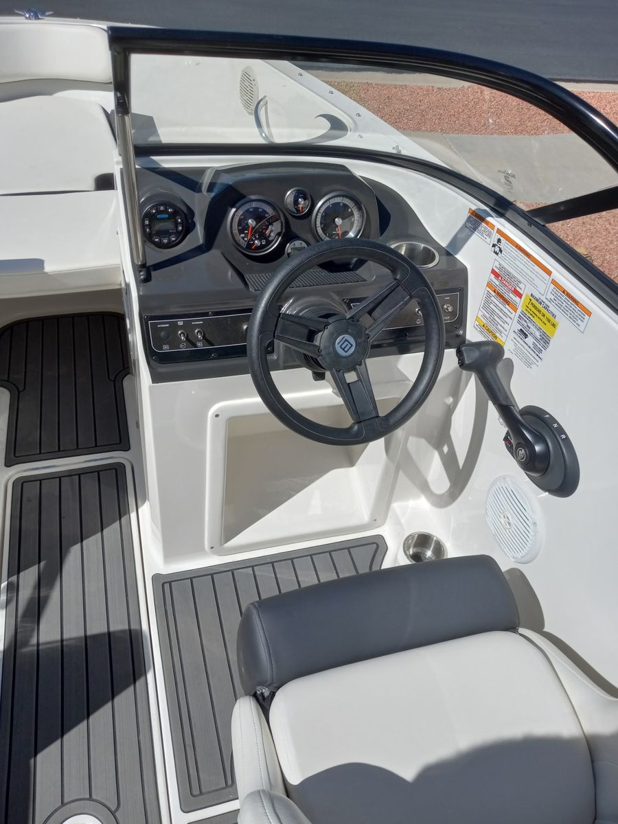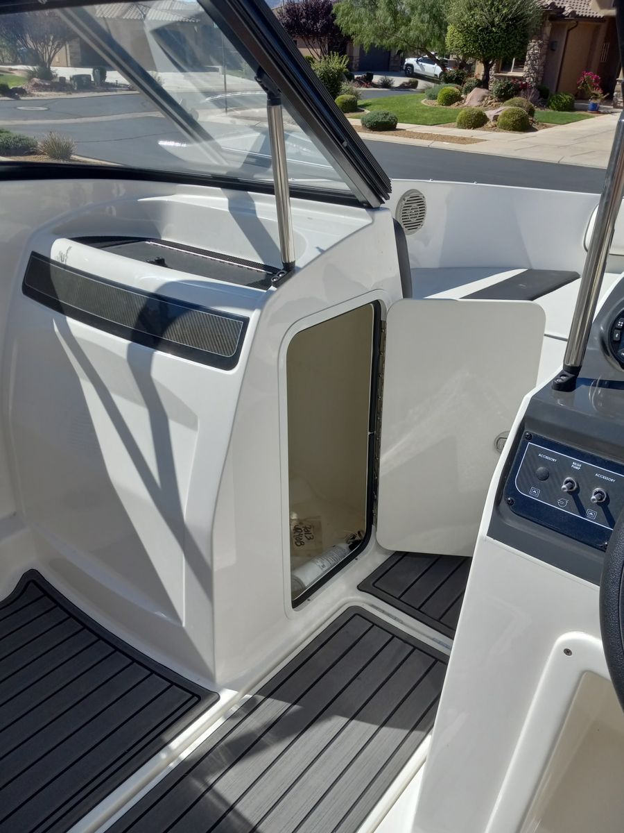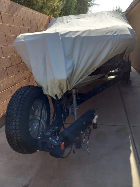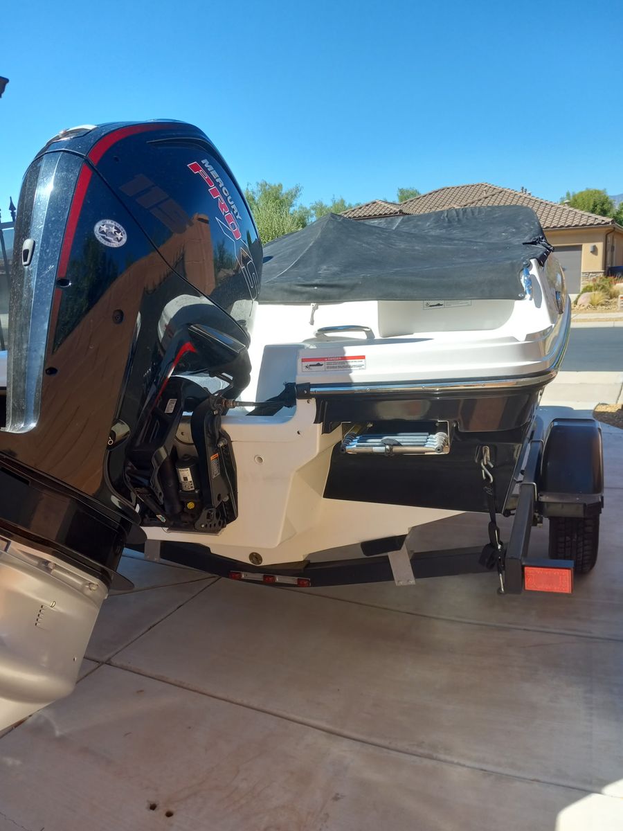 19 ft, open bow, fiberglass, 115 HP Mercury Four stroke EFI, dual battery, 7 passenger, helm seat with 180° swivel, 33 gallon fuel capacity, single axle with swing tongue painted galvanized trailer, AM/FM stereo with MP3 capability, standard speakers. Bimini canvas top, Approximately 57 hours total boat and motor. Very well cared for, when not in the water has been covered. Original Owner. Cash only, $28,495.
