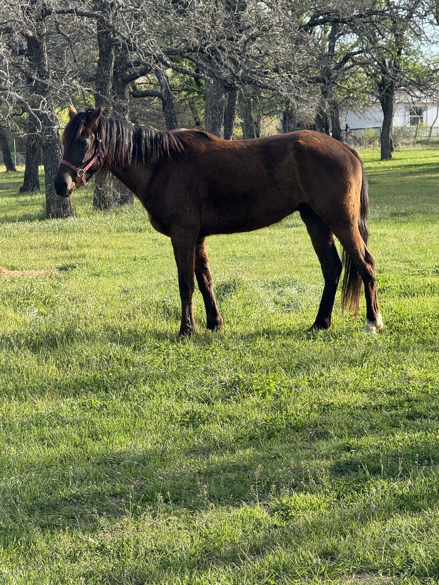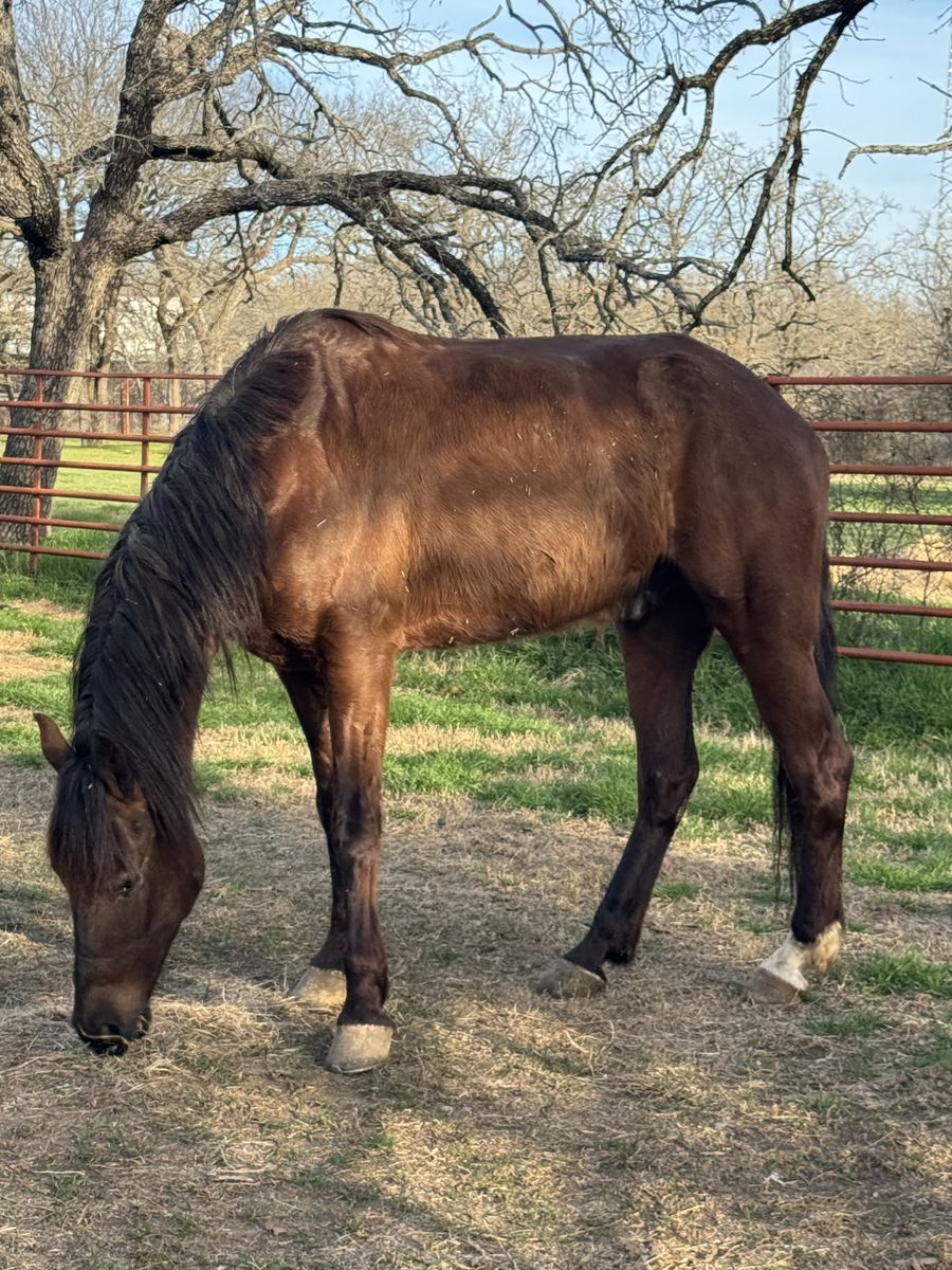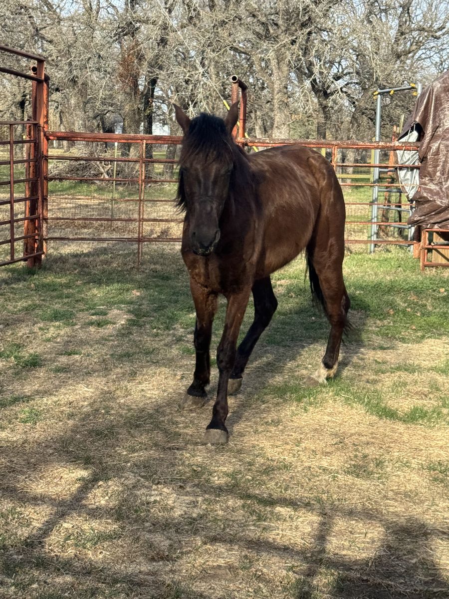 ZelleOslo/Ozzie is a 15.2hh, 4 year old Friesian/Morgan cross gelding looking for his forever home. We rescued him from the Bowie Texas Livestock auction the day before he was set to go to slaughter. He went same day to Sacred Acres in Springtown, Texas for a full 30 day quarantine.
