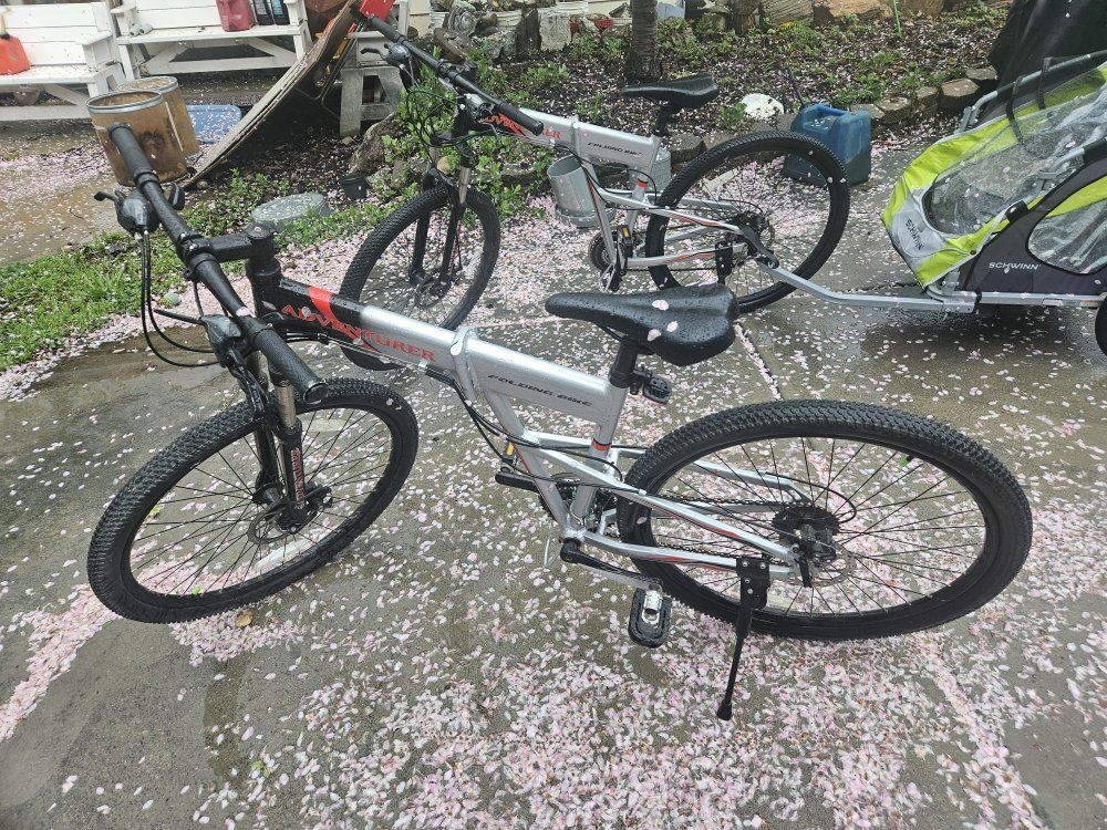 only used twice so new. All tires are in great condition. adventurer folding bike 200 each