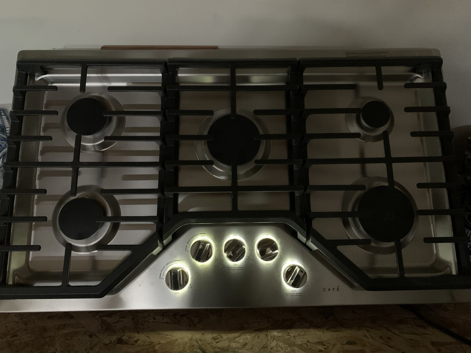 VenmoCafe Gas Cooktop, never used, has the regulator and gas line. Dimensions: 36”x21” outside 33.5”x18.75” inside that sits in opening.
