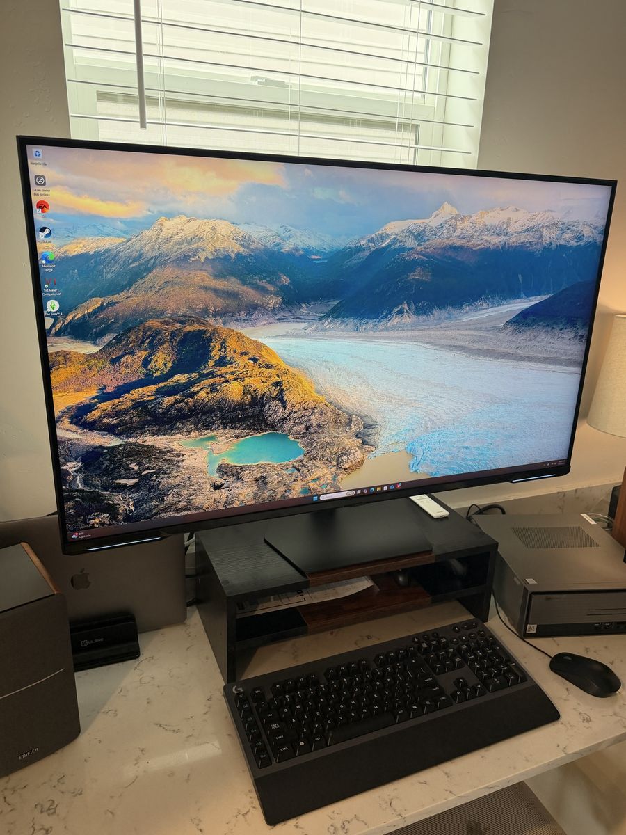 Like new. Very minimal use. Still has the plastic protective covering on the edges of the monitor. Great for gaming abd productivity. Normally $1000 but on sale for $600