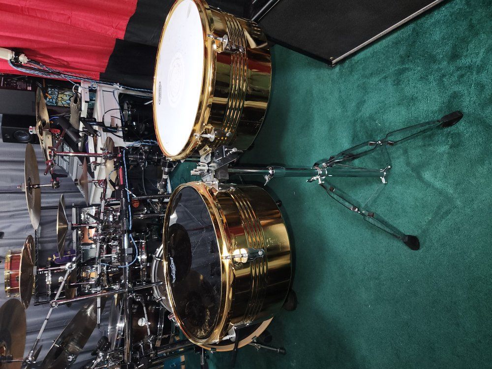 here we have a set of glory timbales 14" and 13" . I have replaced the heads with ones I had laying around . the heads are in like new condition. even though they don't match they are really nice heads. selling for 75 dollars cash only. you can get the new for 90 but they come with crap heads you'll be switching out immediately. these are in new condition I literally played once changed the heads played them once more and couldn't find a spot around the kit to put them so I am letting them go at a great price with over 50 dollars in heads on them