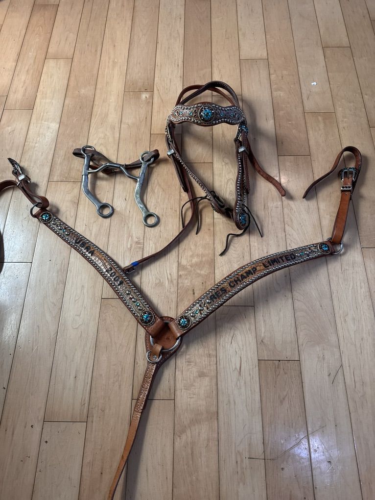 ApplePaySelling full set or willing to sell pieces separately as well. includes breast collar, bridle, and bit. All are well taken care of and in basically new conditions.