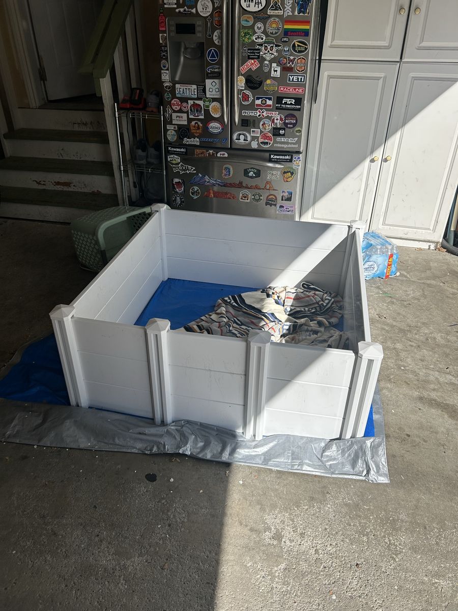 ApplePayExcellent condition. Only used the past 8 weeks. 4' x 4'. Removable slats so mom can come and go and pups are secure.
