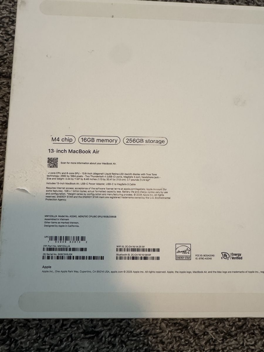 ApplePayLike New Used for maybe 3 hours still in box *has been reset to factory 13" • Apple M4 10-core - 8-core GPU • 256 GB • RAM 16GB • Midnight