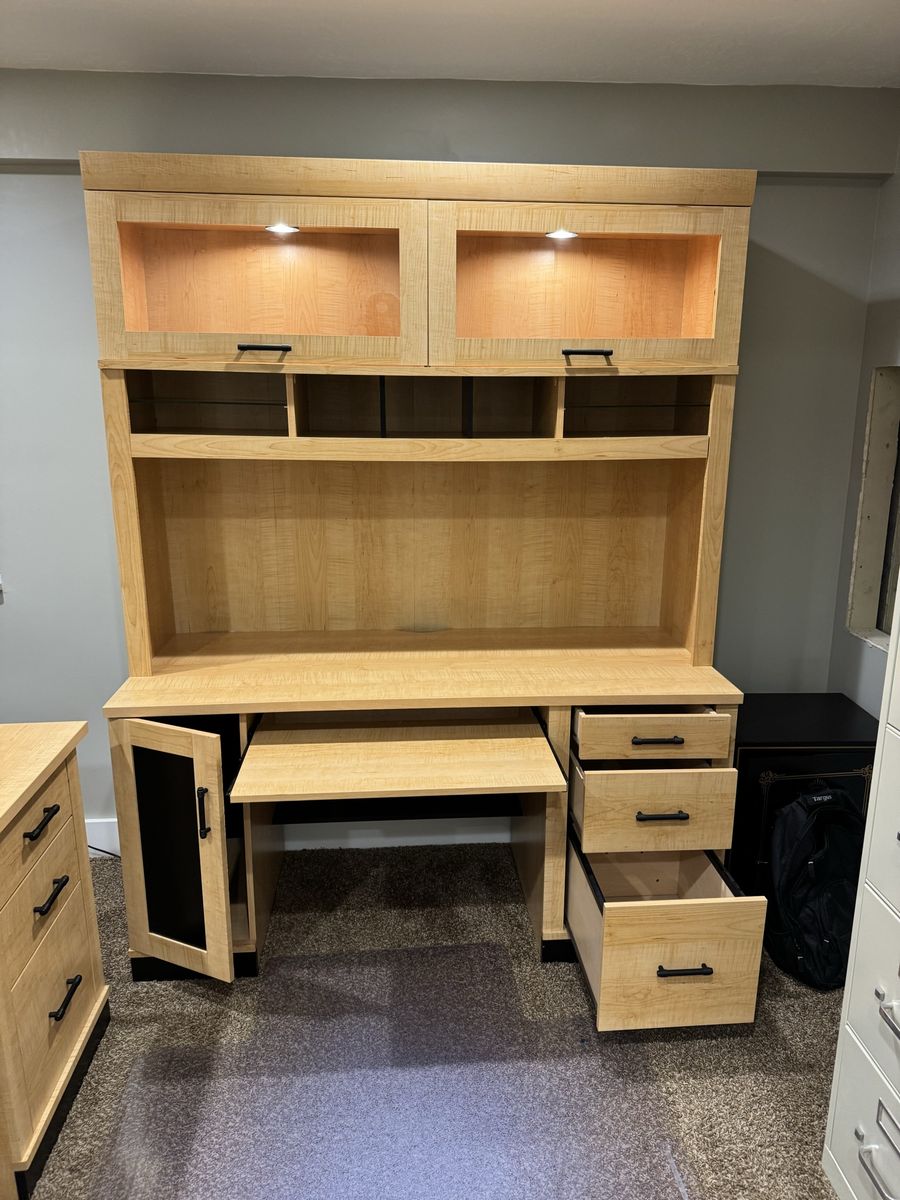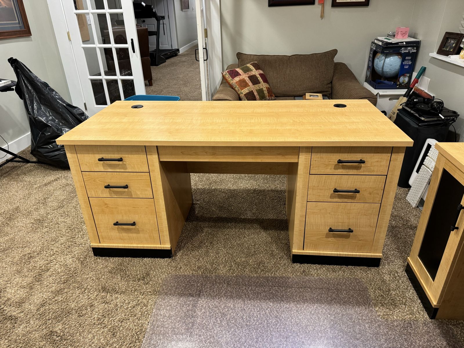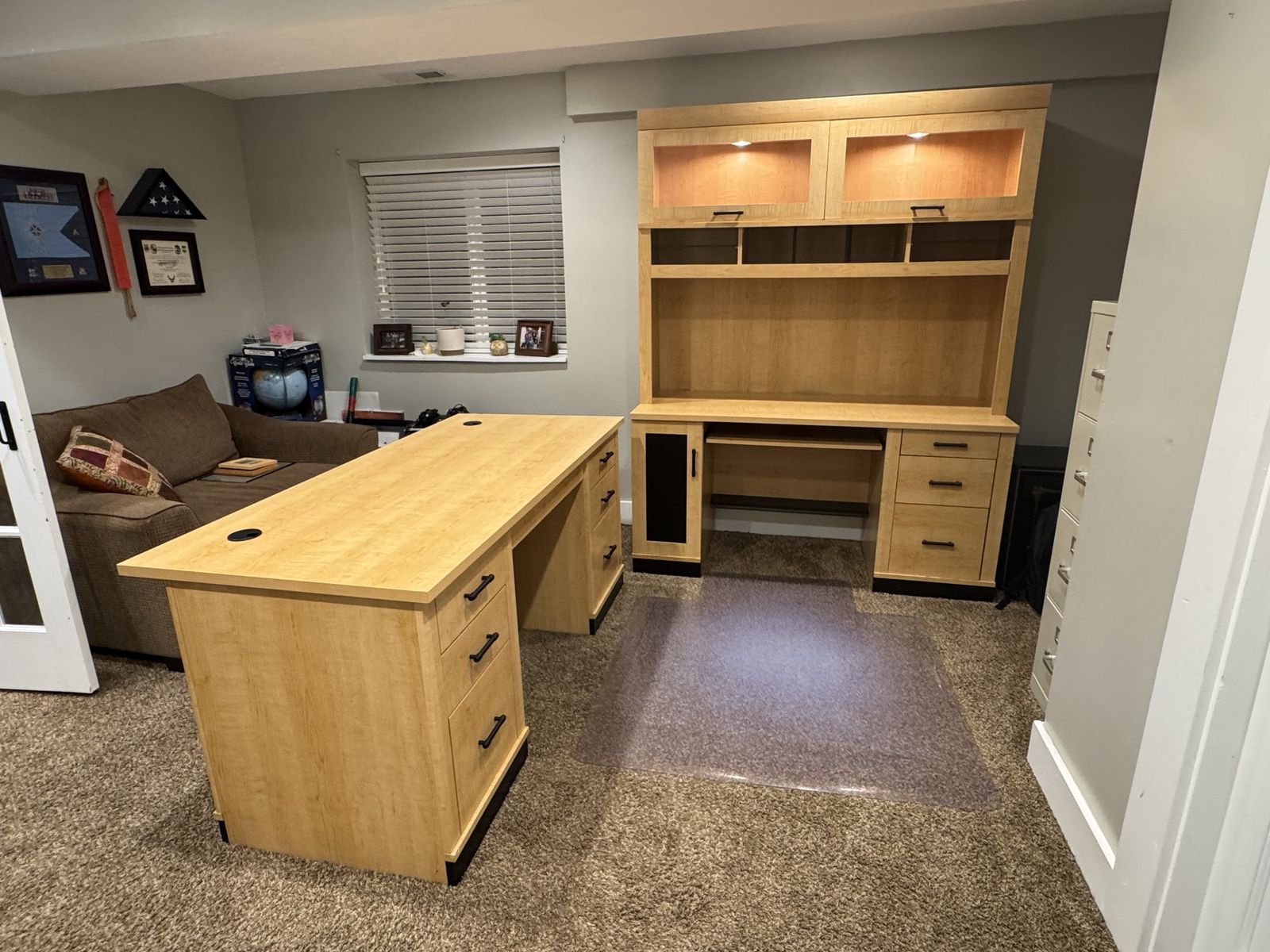 VenmoThis is a 2-piece executive desk and hutch. It is in good condition, with plenty of space for storage and computer/other electronics. I paid over $1,700.00 for the set. I am liquidating at $350. I have it all dissembled in my garage for easy pick up and installation in your home. Cash or Venmo only. No scams. Thanks for looking.