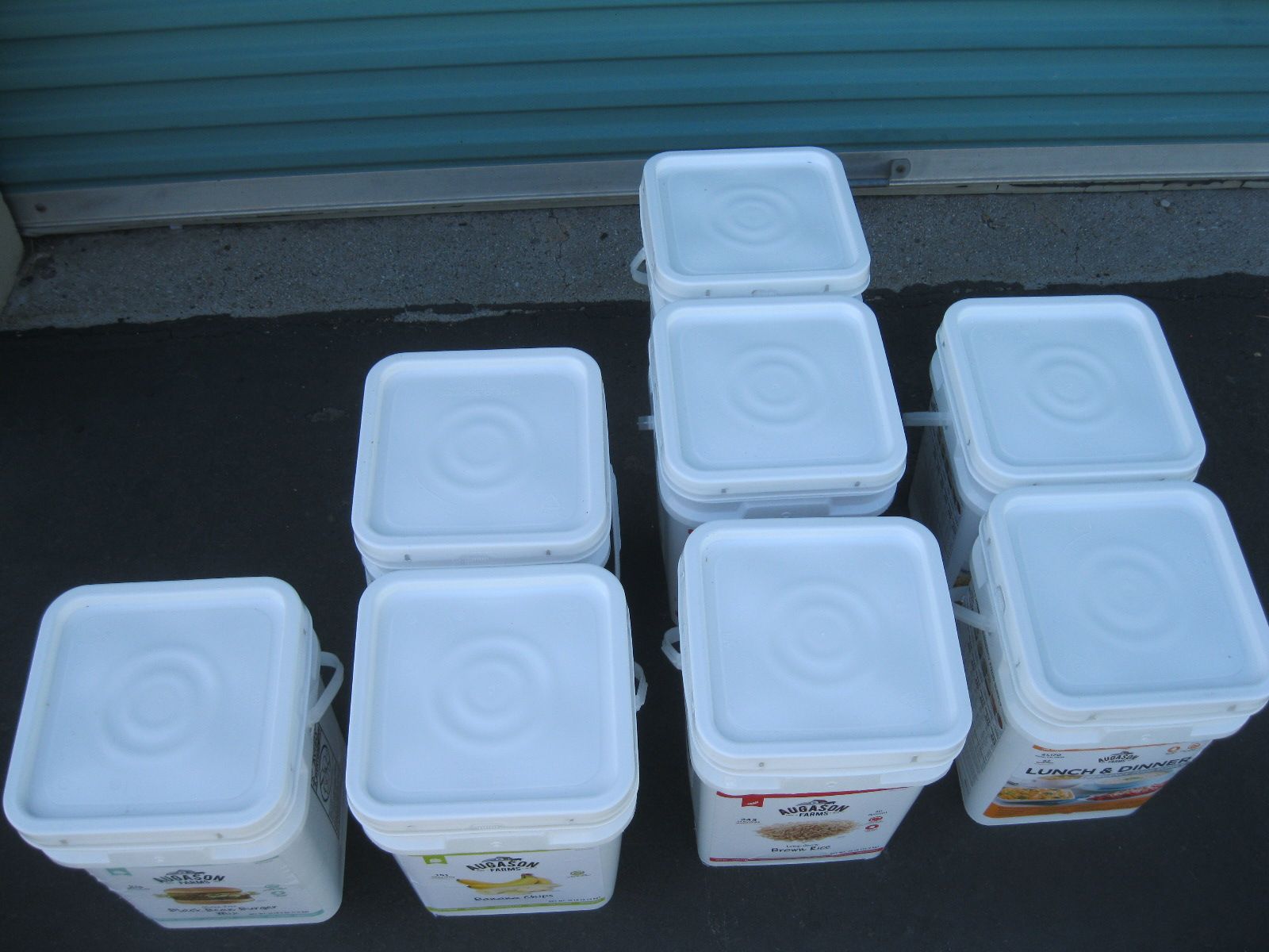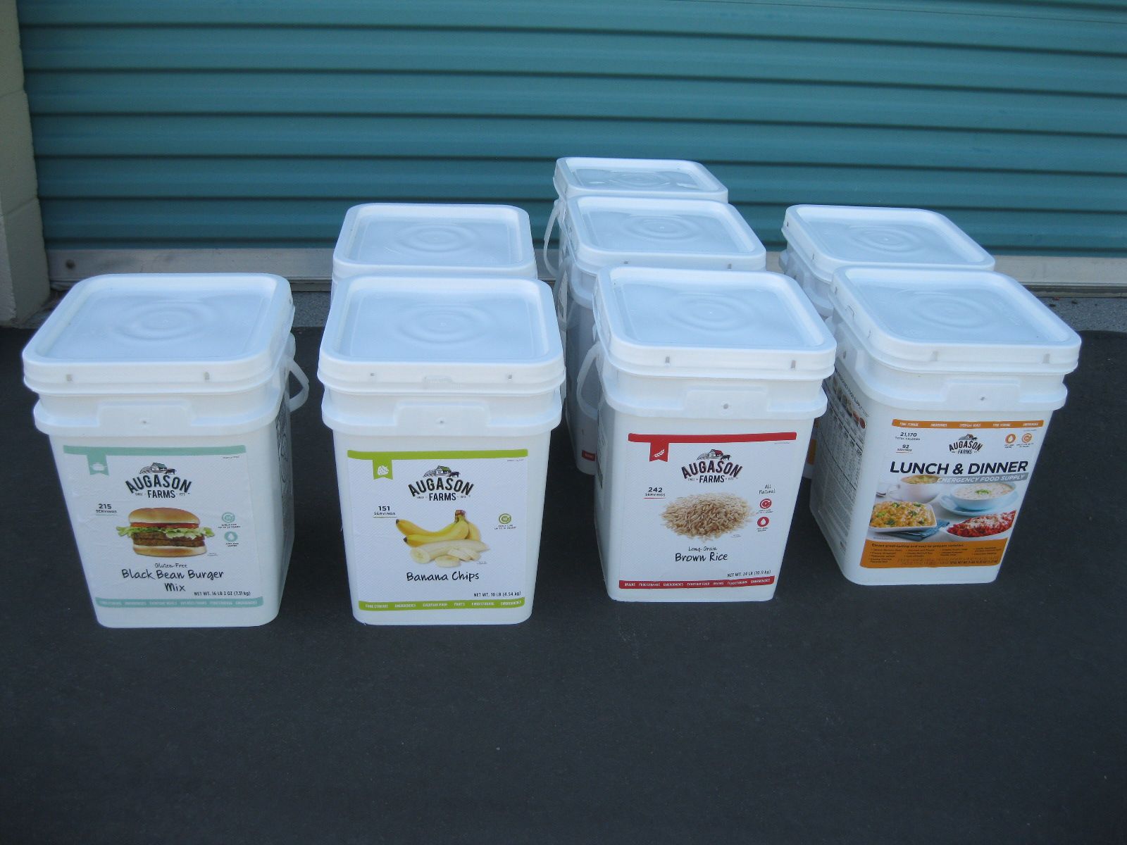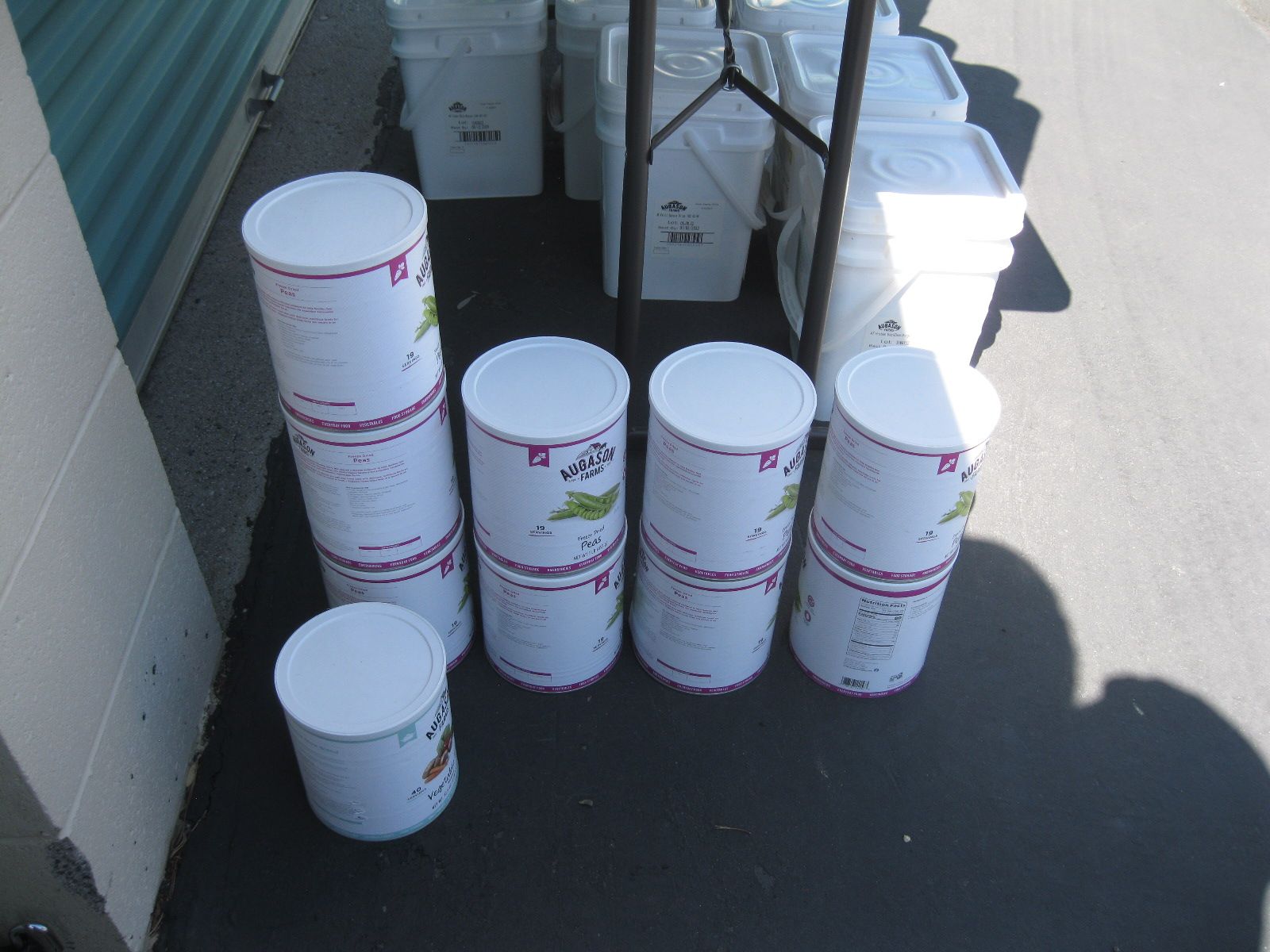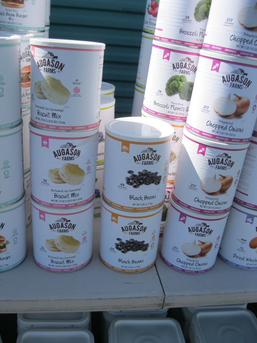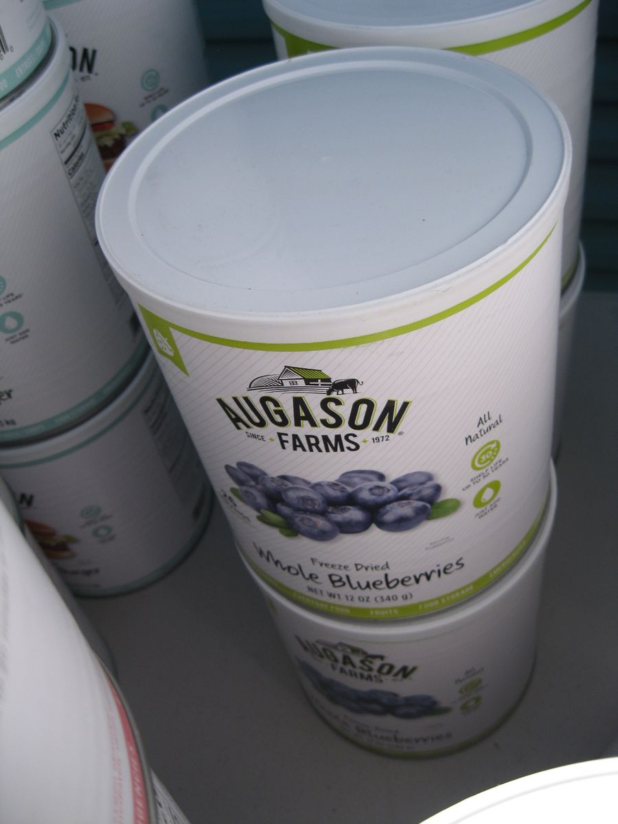 For sale is a lot of new unopened Augason Farms freeze dried foods storage that was packed in 2021-2022. There are 25 cans of peas, 17 cans Vegetable stew, 14 cans black bean burger, 3 cans buttermilk biscuit mix, 2 cans black beans, 4 cans whole blueberries, 3 cans broccoli florets and stems, 1 can white meat, 4 cans chopped onions, 1 can dried whole eggs, 1 can scrambled egg mix, 11 cans of bell peppers, 7 cans diced carrots, 3 cans peanut butter powder, 2 cans butter powder, 6 cans of pineapple, 2 cans southwest chili mix, 5 can banana chips, and 1 can whole raspberries. There are also buckets: 1 bucket of black bean burger mix, 2 buckets of banana chips, 3 buckets of brown rice, 2 buckets of lunch and dinner mix. The cost on this lot is around $3315 to replace it. Has been stored in a dark basement since new. $1000 or best offer.