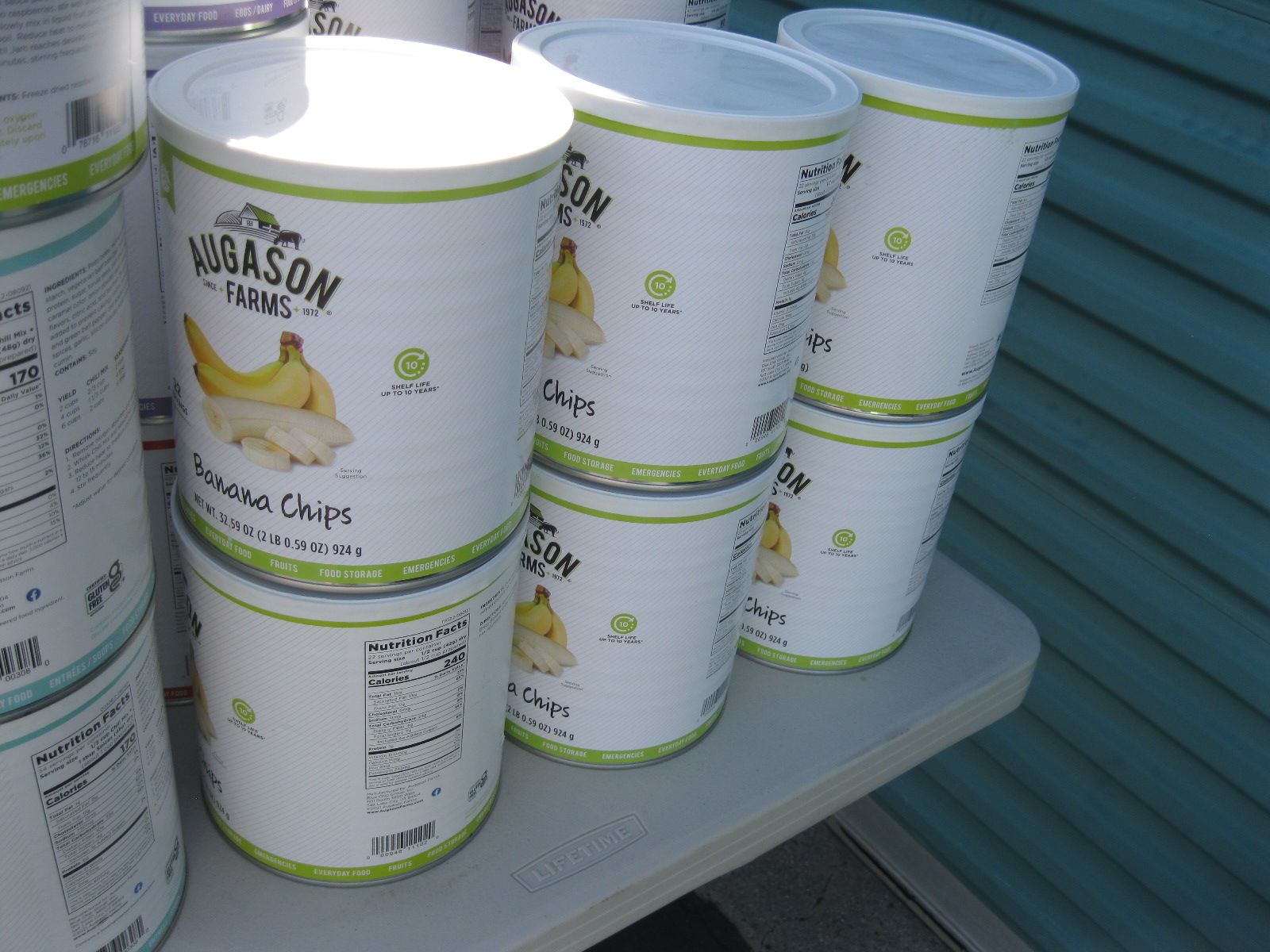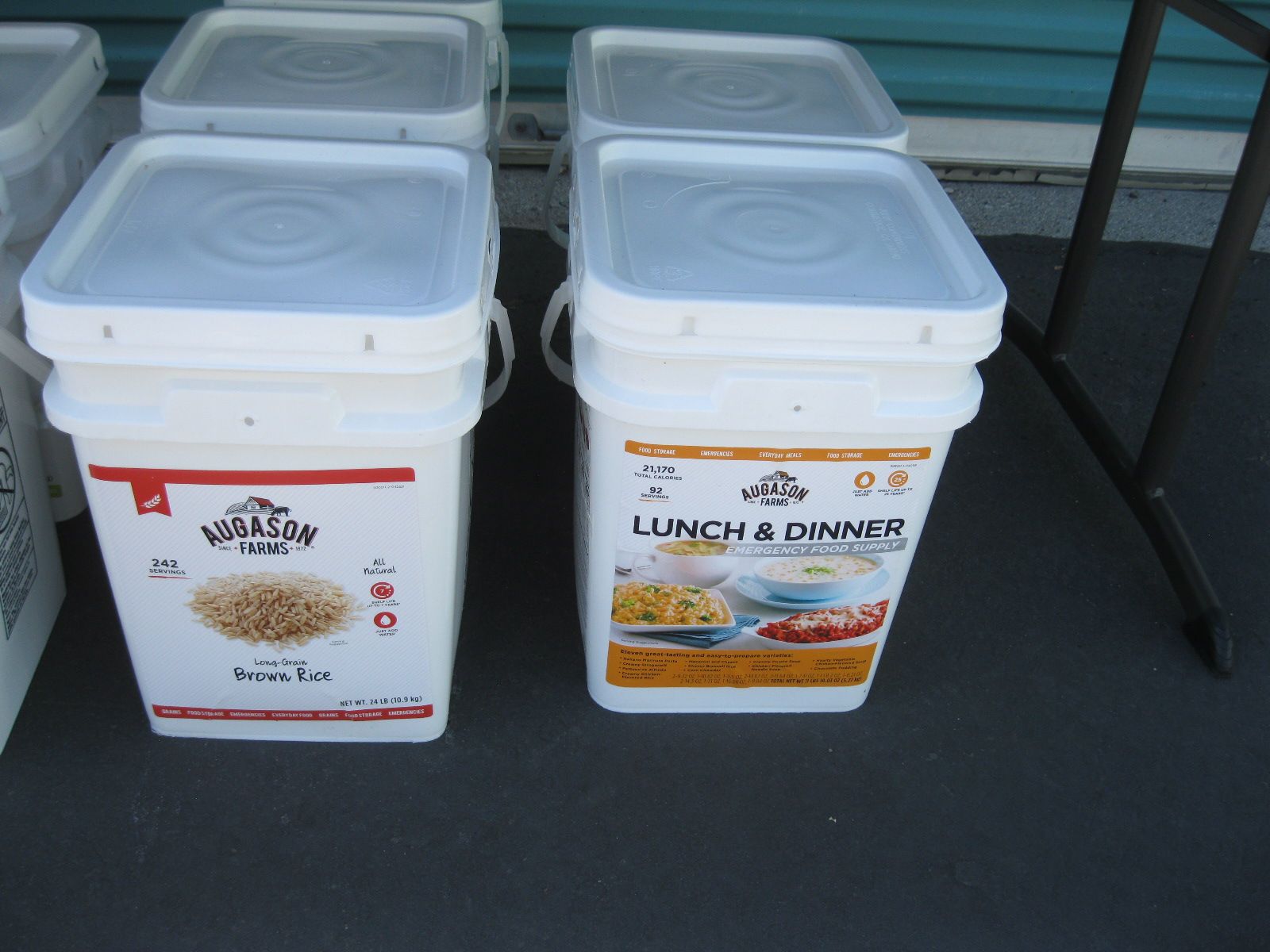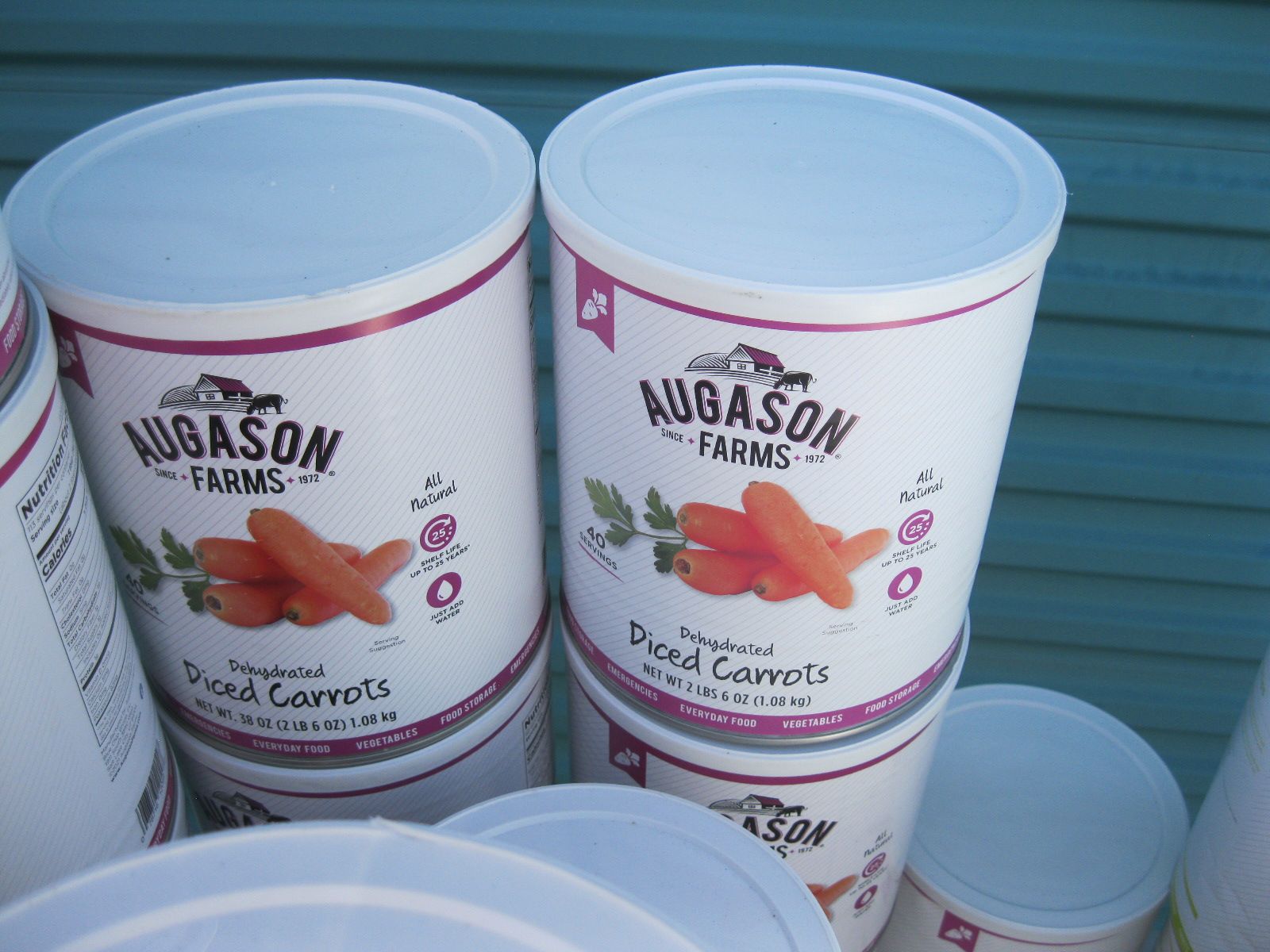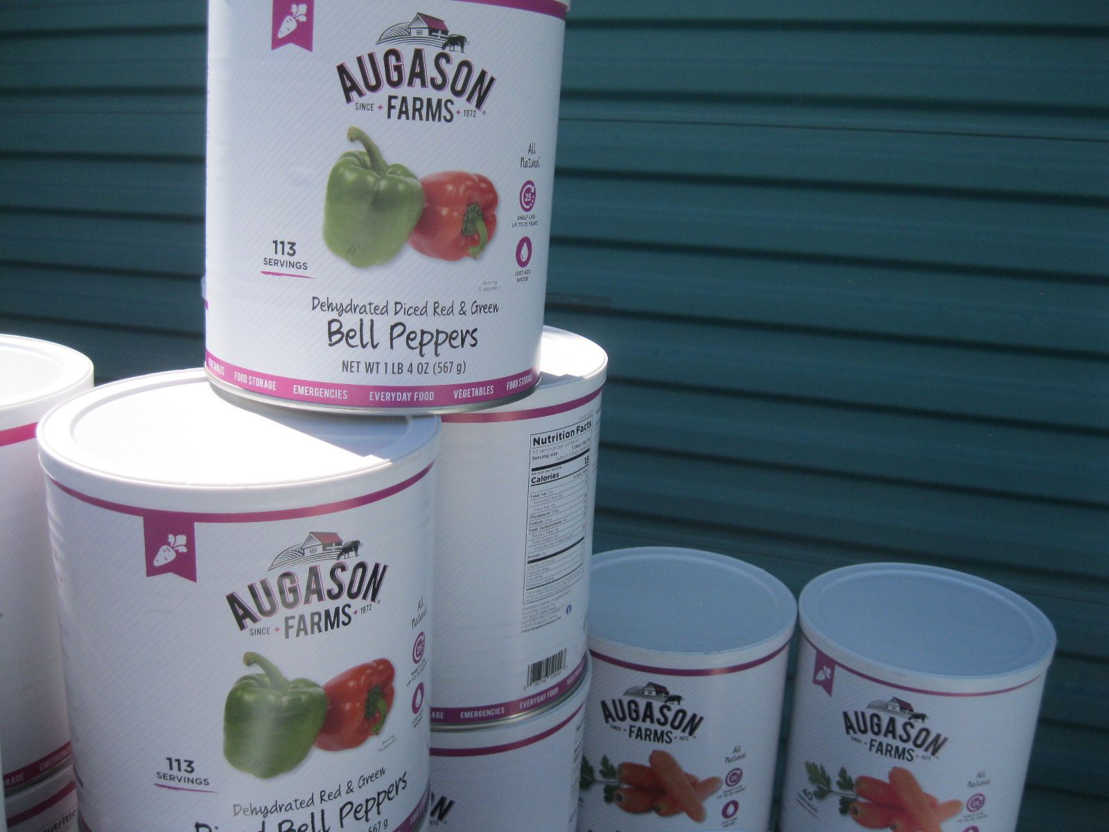 For sale is a lot of new unopened Augason Farms freeze dried foods storage that was packed in 2021-2022. There are 25 cans of peas, 17 cans Vegetable stew, 14 cans black bean burger, 3 cans buttermilk biscuit mix, 2 cans black beans, 4 cans whole blueberries, 3 cans broccoli florets and stems, 1 can white meat, 4 cans chopped onions, 1 can dried whole eggs, 1 can scrambled egg mix, 11 cans of bell peppers, 7 cans diced carrots, 3 cans peanut butter powder, 2 cans butter powder, 6 cans of pineapple, 2 cans southwest chili mix, 5 can banana chips, and 1 can whole raspberries. There are also buckets: 1 bucket of black bean burger mix, 2 buckets of banana chips, 3 buckets of brown rice, 2 buckets of lunch and dinner mix. The cost on this lot is around $3315 to replace it. Has been stored in a dark basement since new. $1000 or best offer.