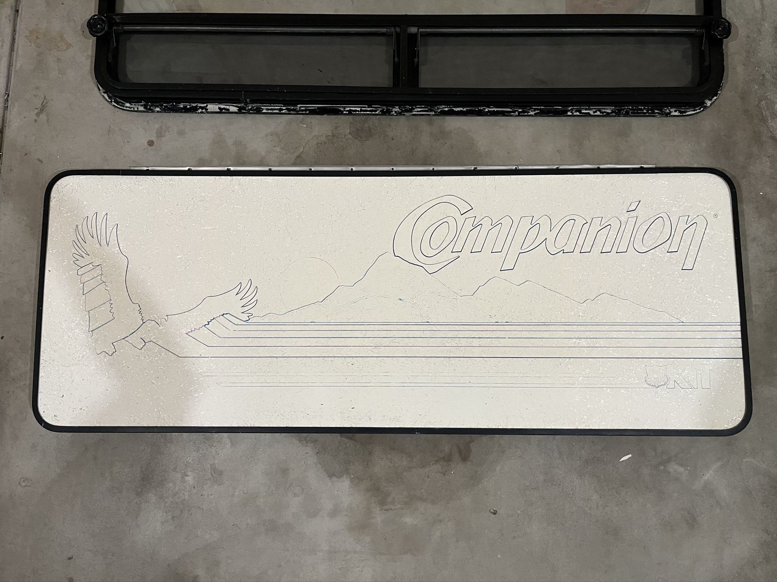 VenmoOriginal front window and matching fiberglass rock guard removed from a 1995 Kit Companion travel trailer.