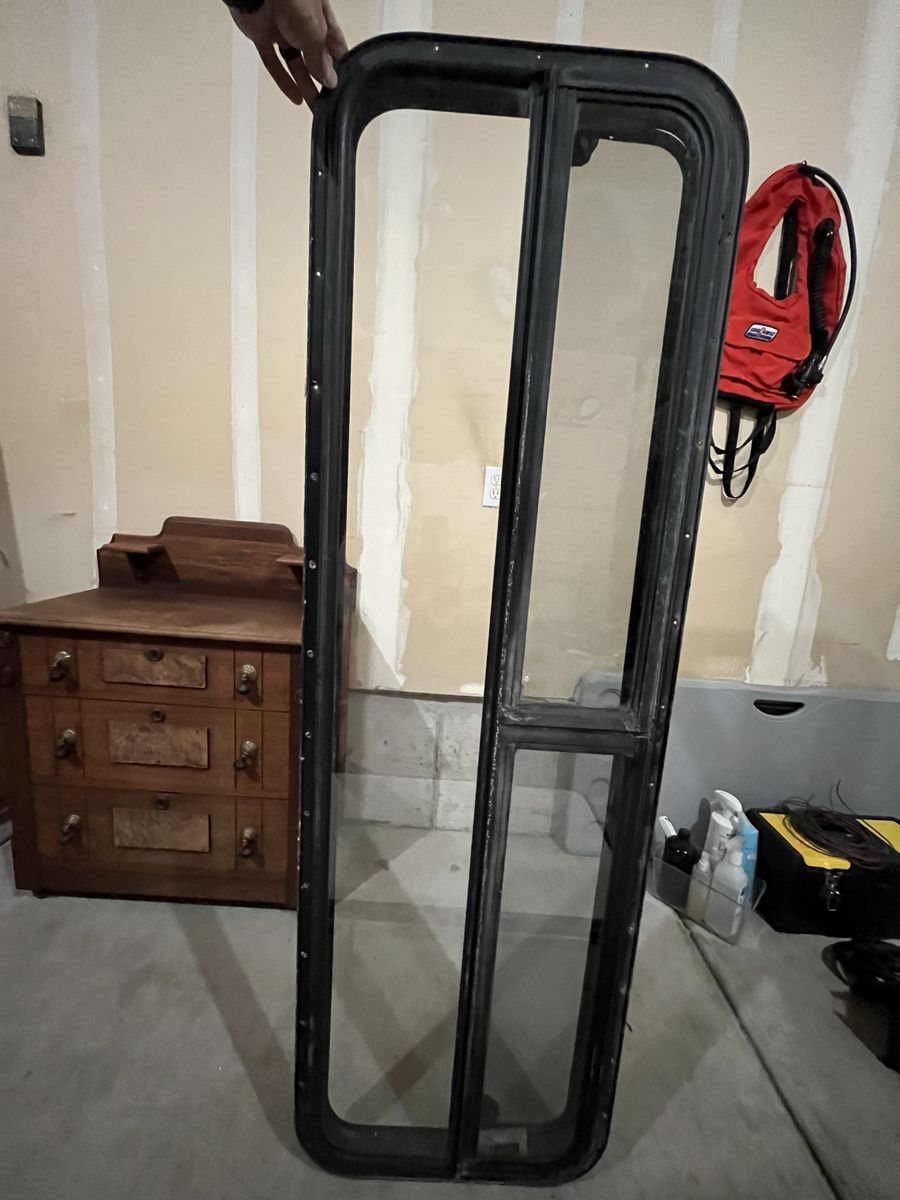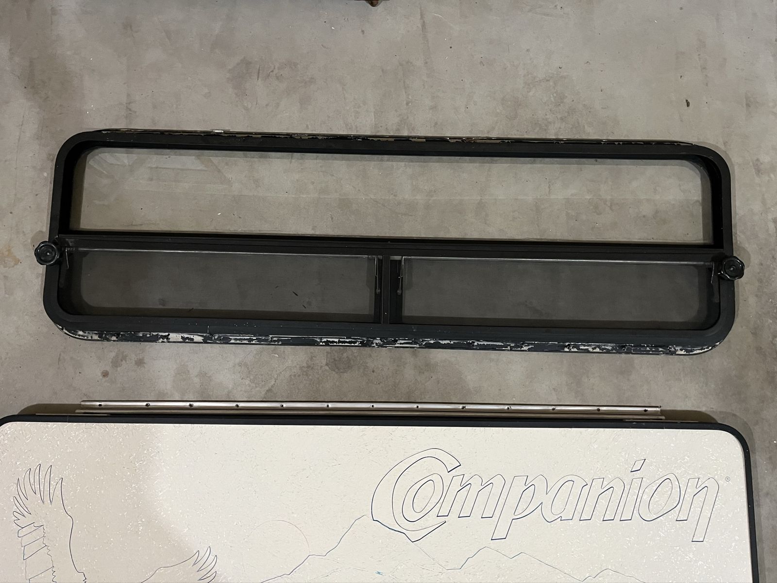 Both pieces are solid and would be great for a restoration project or replacement on a similar vintage trailer.