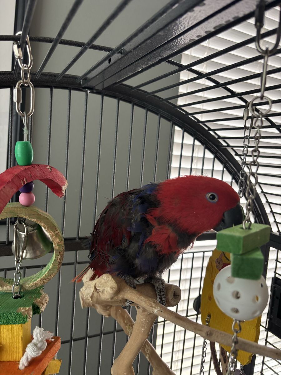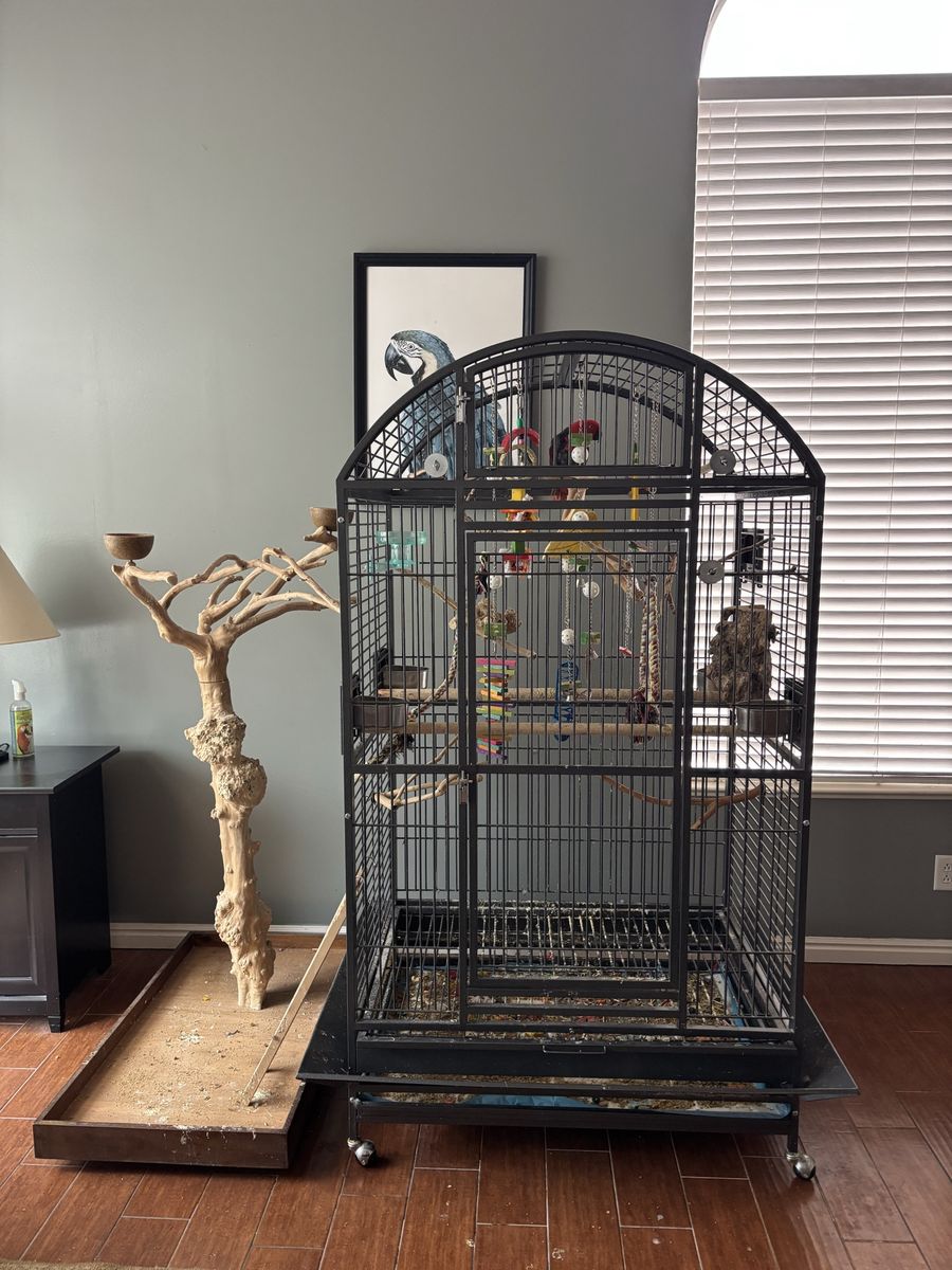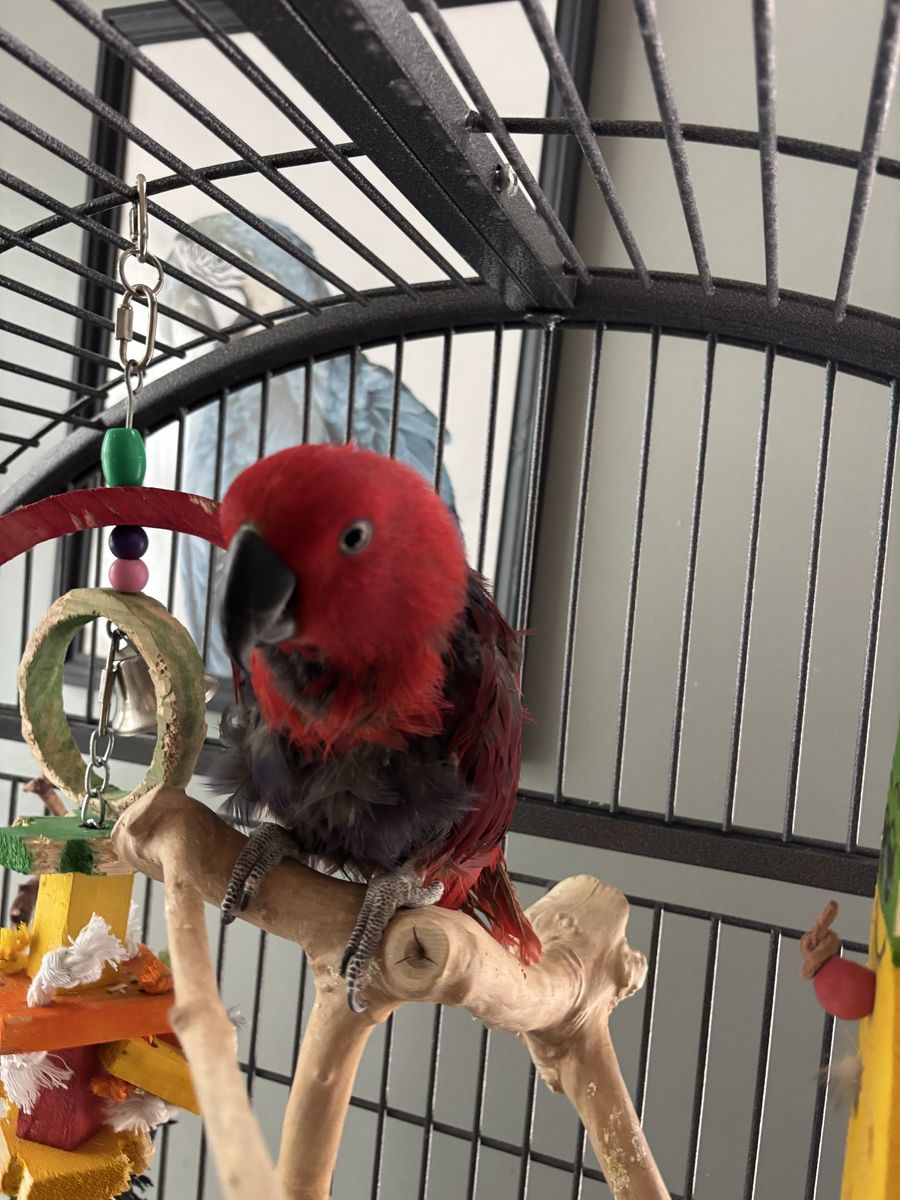 VenmoThis is Willow. She is about 6 years old. We have had this sweet girl for 4 years now. I am looking to find a good home for her. She comes with a VERY LARGE cage, Java tree, and a bird carrier back-pack. She is so sweet and kind to people. She is hand tamed. She likes to be held but will also push your hand away with her beak if she’s not interested. She is nice to birds but is territorial of her perching areas. I think she has anxiety which is why she plucks. She has been checked by a vet when I got her. She was plucking then. All tests came back normal though, so they thought anxiety as well. She will have moments where she doesn’t pluck as much. The first picture was a while ago but all the others are recent.