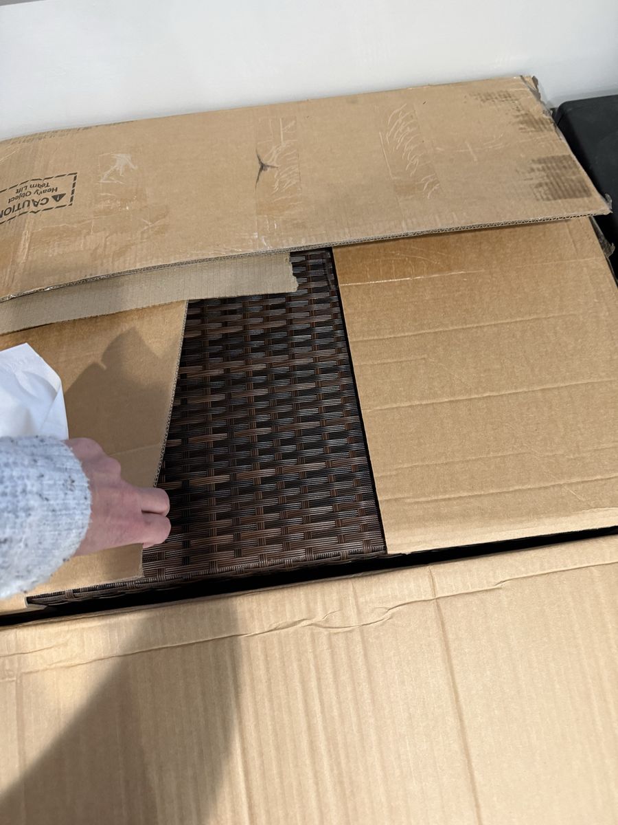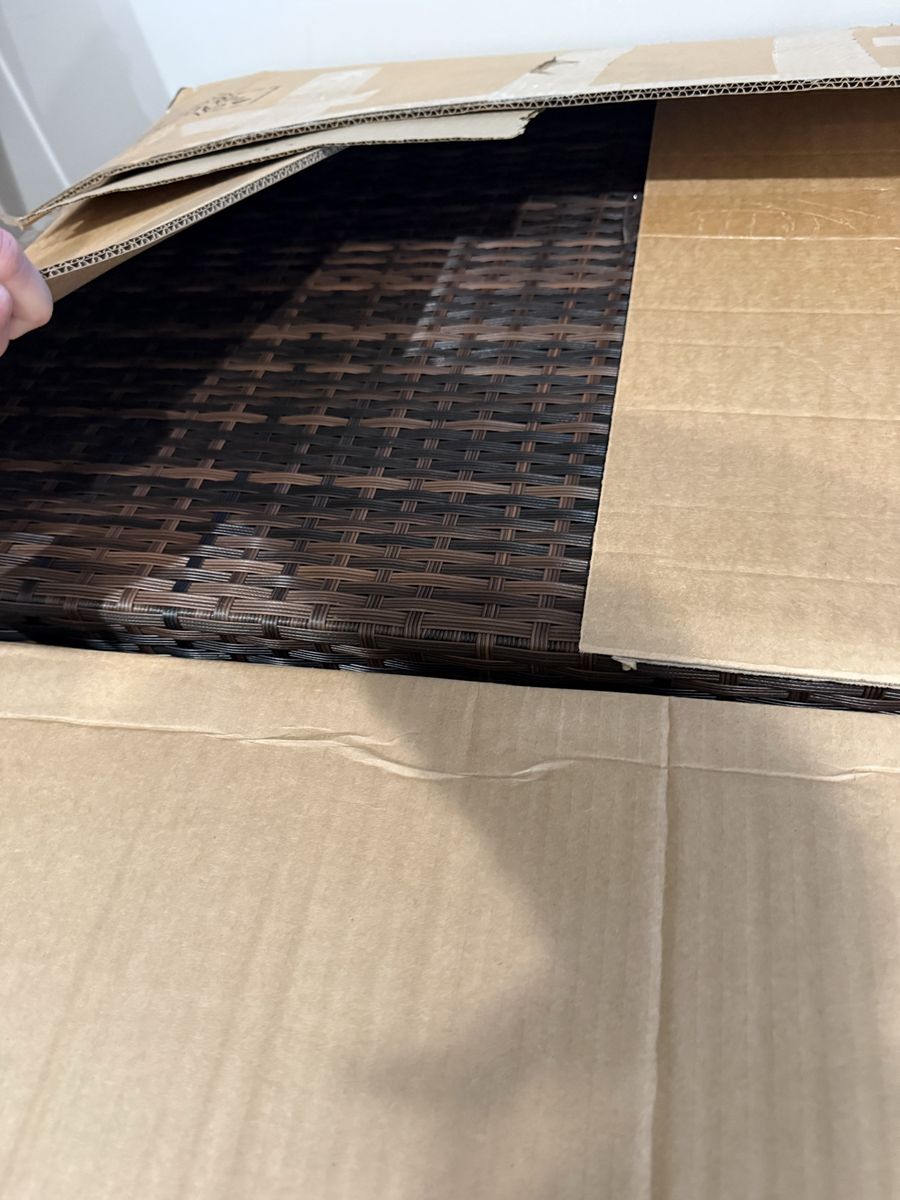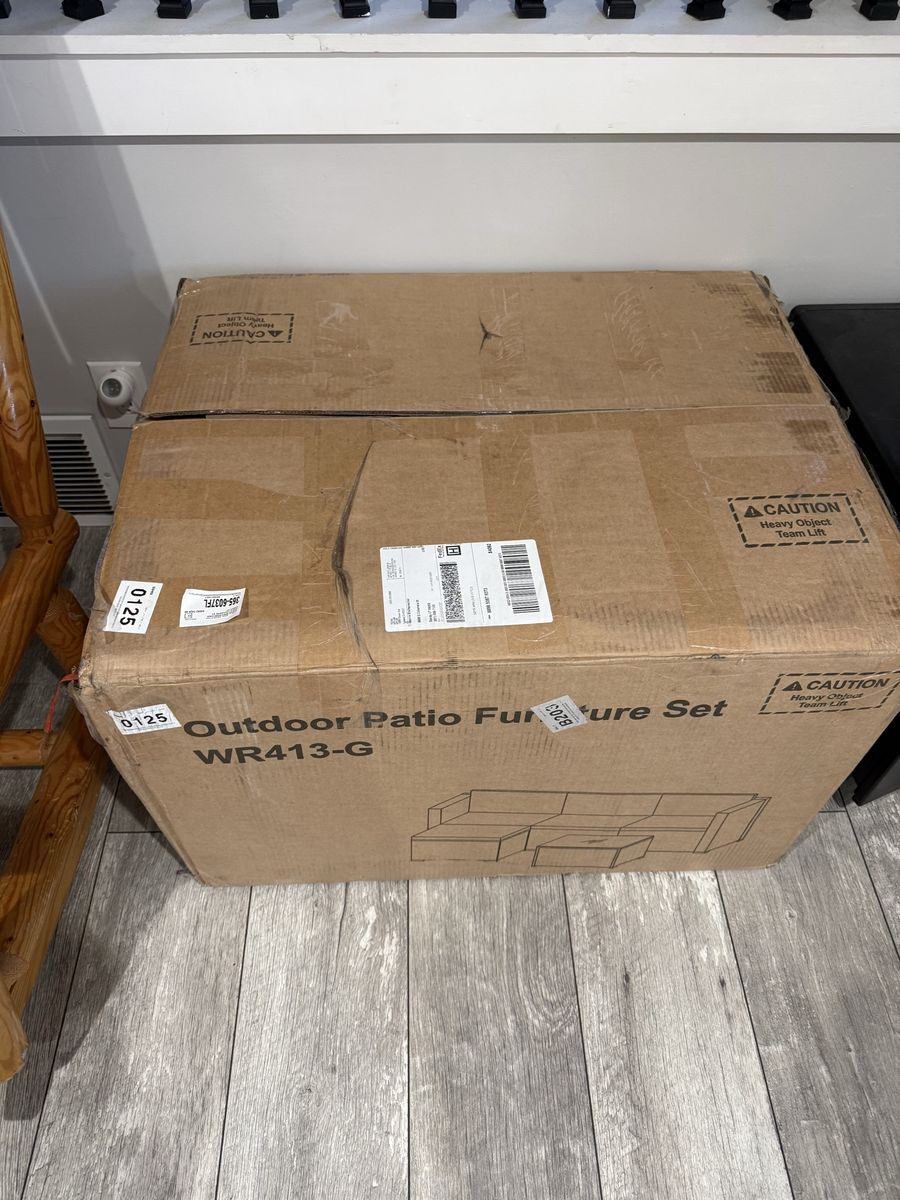 ZelleBrand NEW patio furniture couch/lounge & table STILL IN THE BOX. Never taken out. Accidental purchase ~ it can be yours to enjoy this coming spring/summer. Just come and get it and easily load it into your car. No hassle with assembled furniture having to fit!