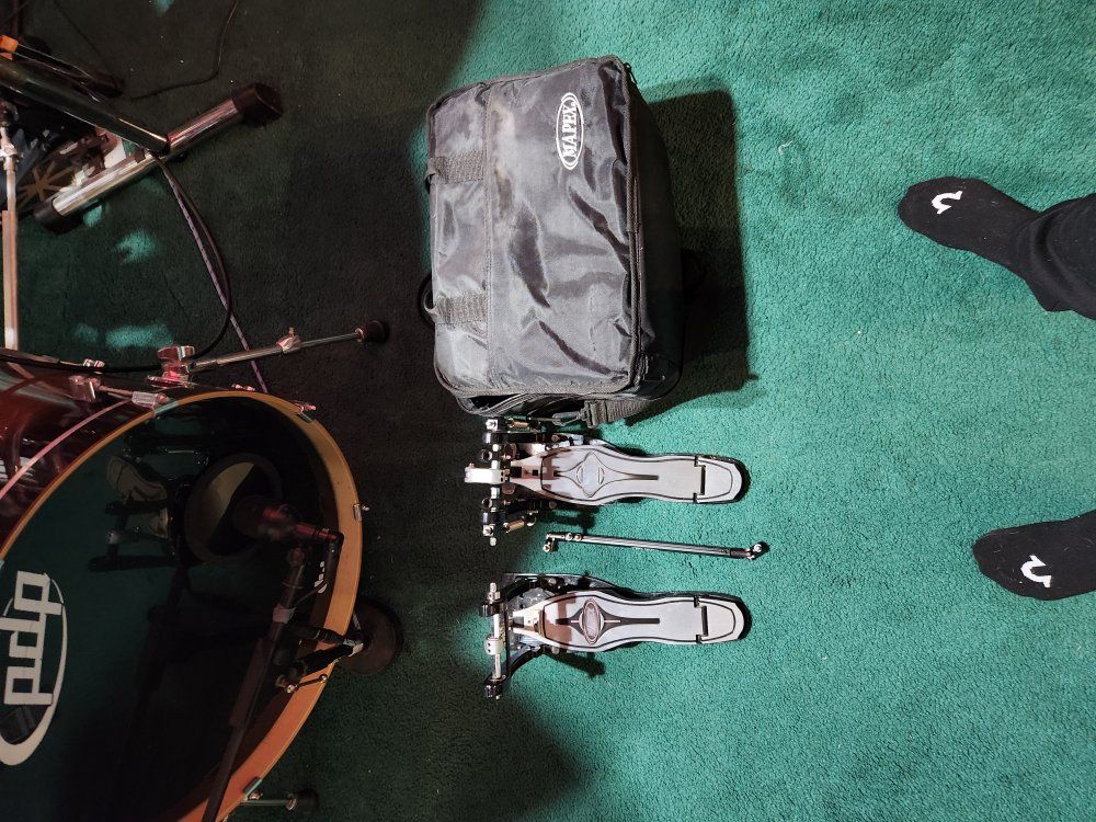 mapex direct drive double pedal with case in decent but used condition with case. asking 75 cash obo.