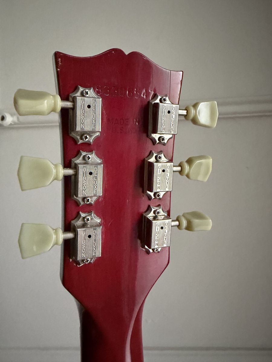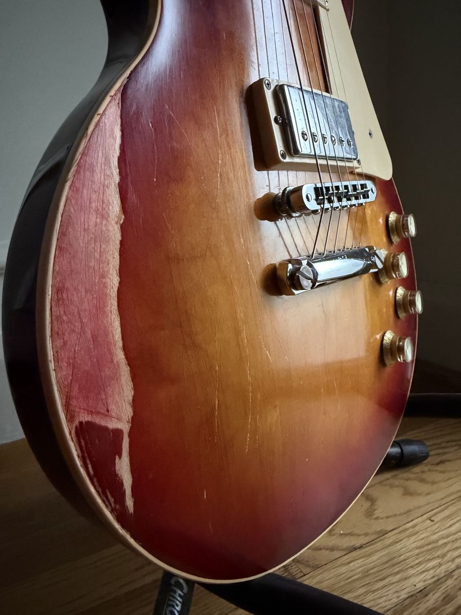 This LP plays fantastic with low action and a super quick neck. The pickups could use wax potting as they sometimes squeal at really high gain.