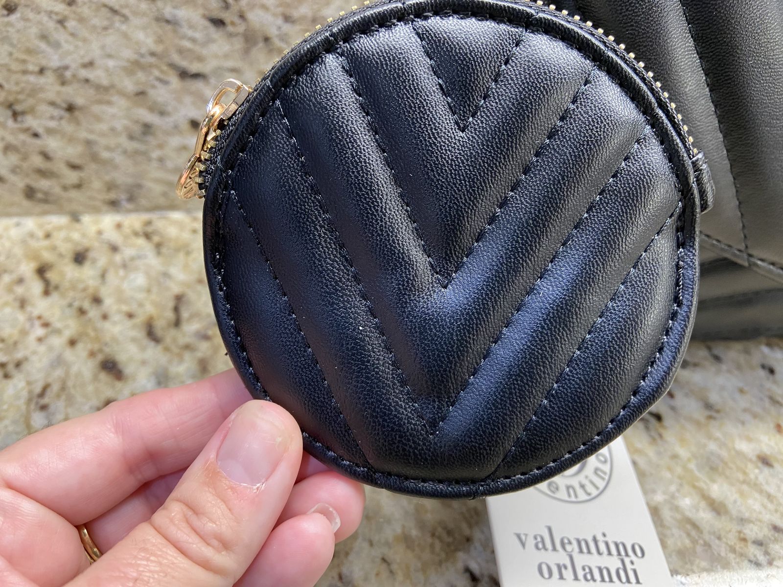 ApplePayNew with tags Valentino Orlandi black vegan leather crossbody bag With coin pouch. MSRP $380