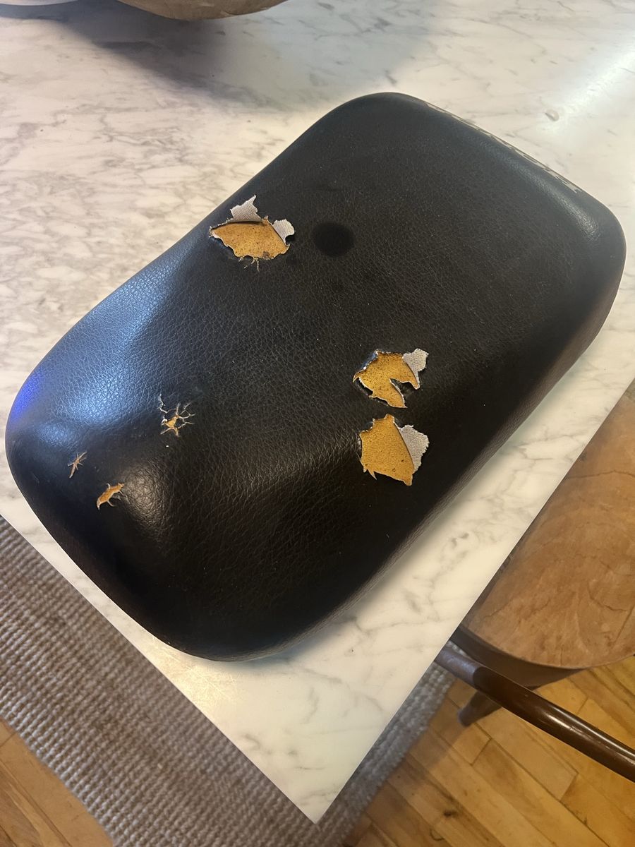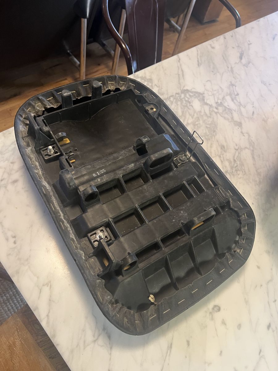 Venmo2008 Honda ruckus seat, needs cover but otherwise in excellent condition. Damage to cover was from a hail storm, the bike it came off of only has 650 miles on it so it’s not from wear, just age and the hail stones.